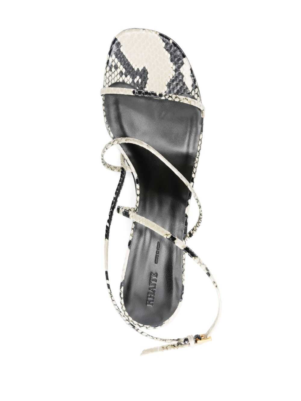 KHAITE 35mm snakeskin-print sandals Made in Italy Highlights light beige/black calf leather snakeskin print buckle-fastening ankle strap 35mm kitten heel strap detailing round open toe branded leather insole leather outsole This piece comes complete with a protective dust bag.