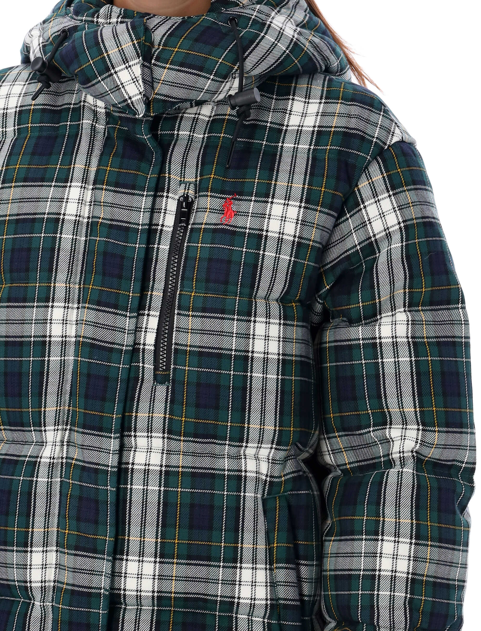 Stay warm in style with this trendy Check down jacket by Ralph Lauren. Crafted from soft and durable 100% cotton, it features a relaxed fit, high neck with adjustable drawstring hood, and zippered chest pocket. The signature Polo logo adds a touch of sophistication. Perfect for any outdoor adventure or casual outing. Get yours today!