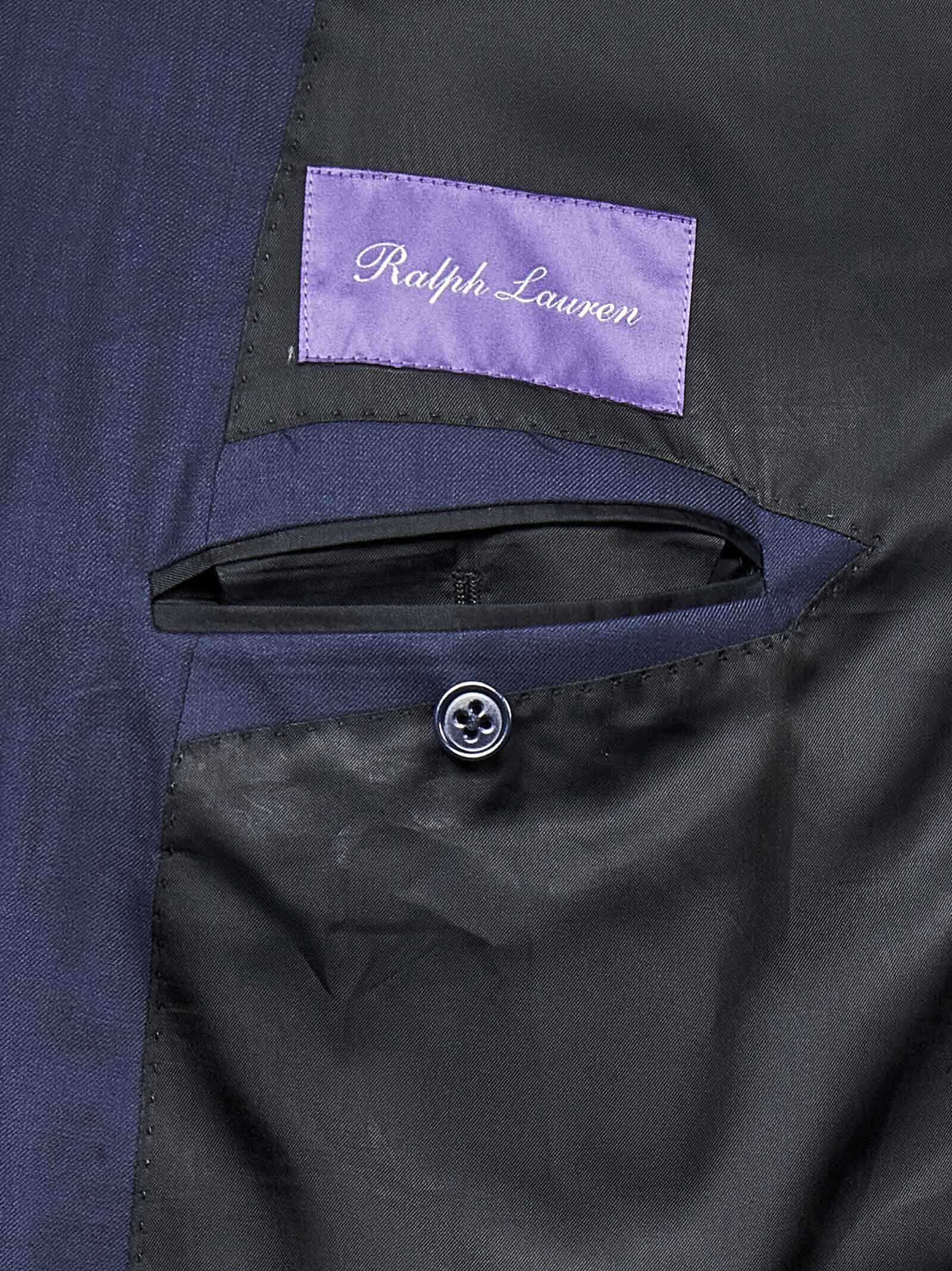 Elevate your wardrobe with this Ralph Lauren blue blazer, crafted from 100% wool. Featuring a double-breasted design and elegant gold-toned buttons, it effortlessly combines sophistication and style for any occasion. Perfect for the modern man.
