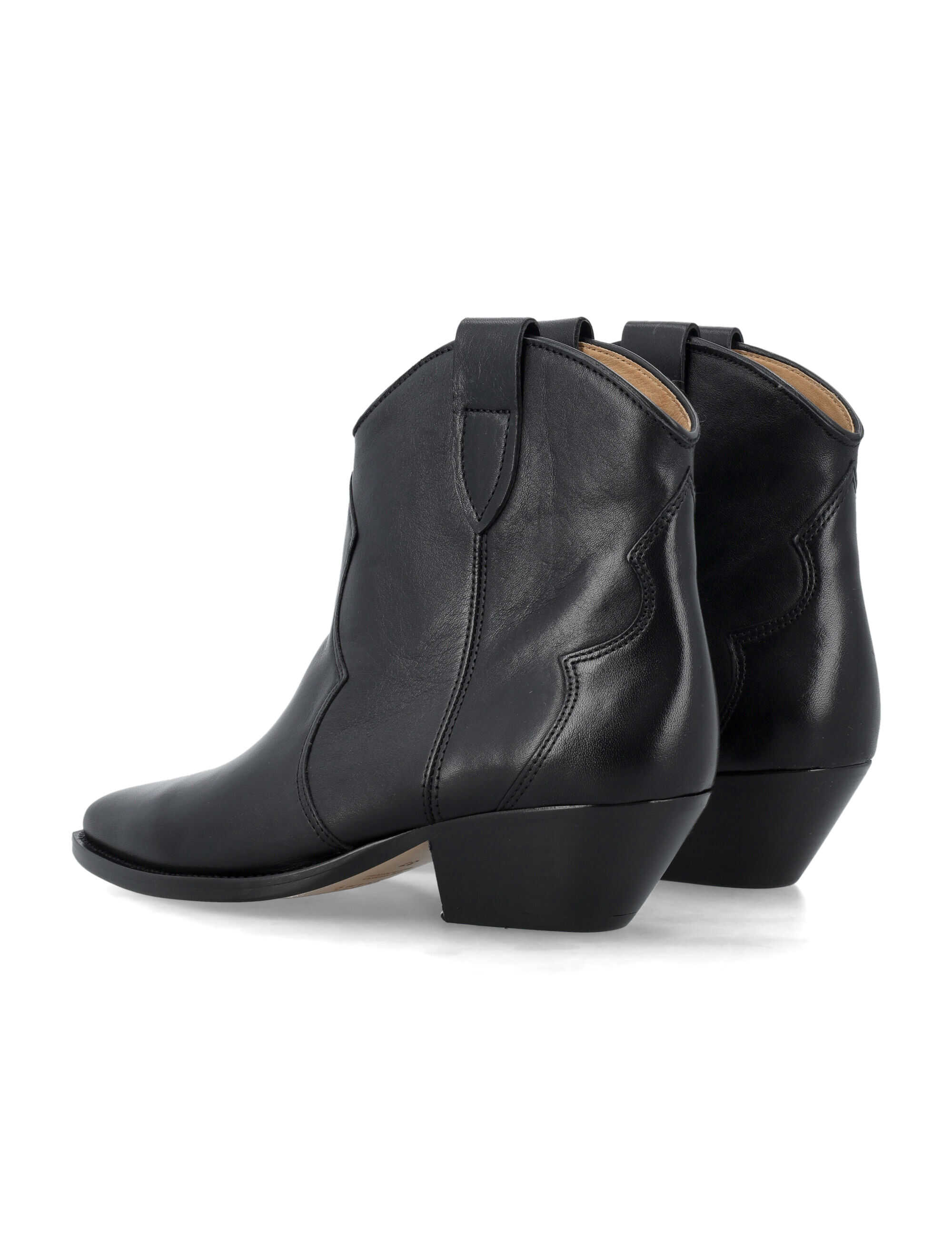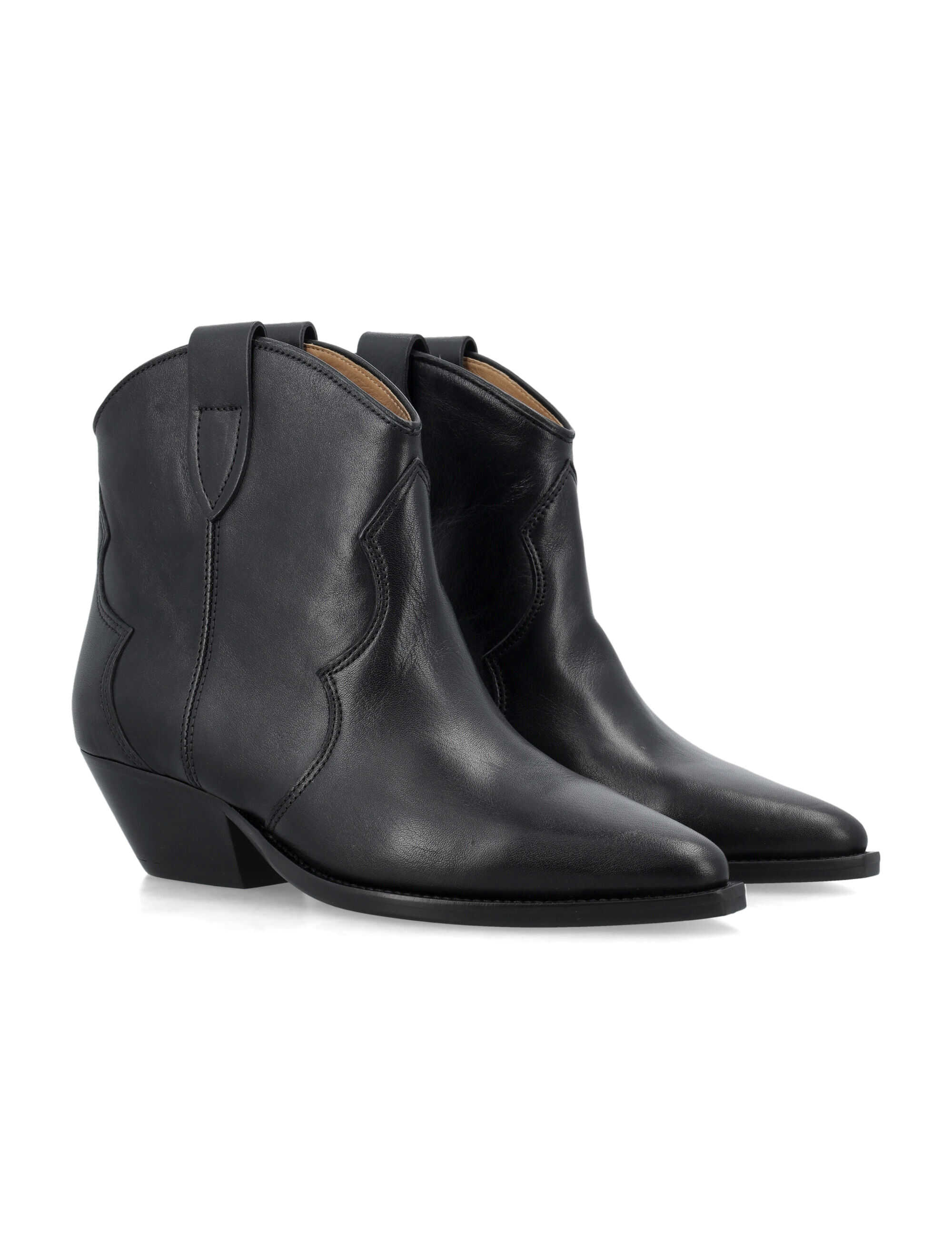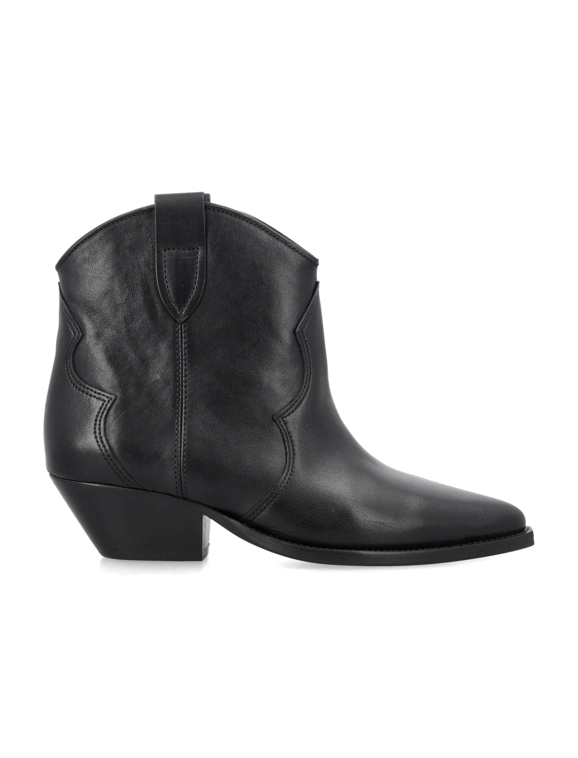 Step out in style with the Isabel Marant Dewina boots. Crafted from 100% calf skin, these ankle-length boots feature a classic cowboy boot silhouette with a pointed toe and low stacked heel. The pull-on style with tabs and tonal stitching details add a touch of Western flair to any outfit. Elevate your look with these versatile and chic boots.