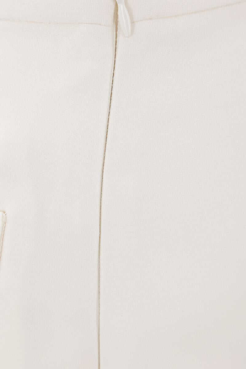 Valentino Garavani A-line miniskirt crafted from ivory Crepe Couture. Featuring a side closure with a hook and invisible zip, welt pockets adorned with jeweled buttons and a jacquard lining.