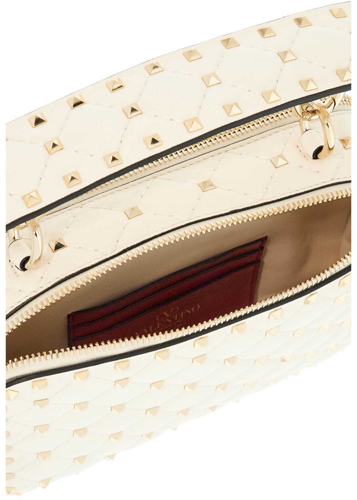 The Valentino Garavani crossbody bag combines elegance and practicality. In ivory leather with quilted design and gold studs, it offers versatility with an adjustable shoulder strap. A timeless Italian luxury fashion accessory.