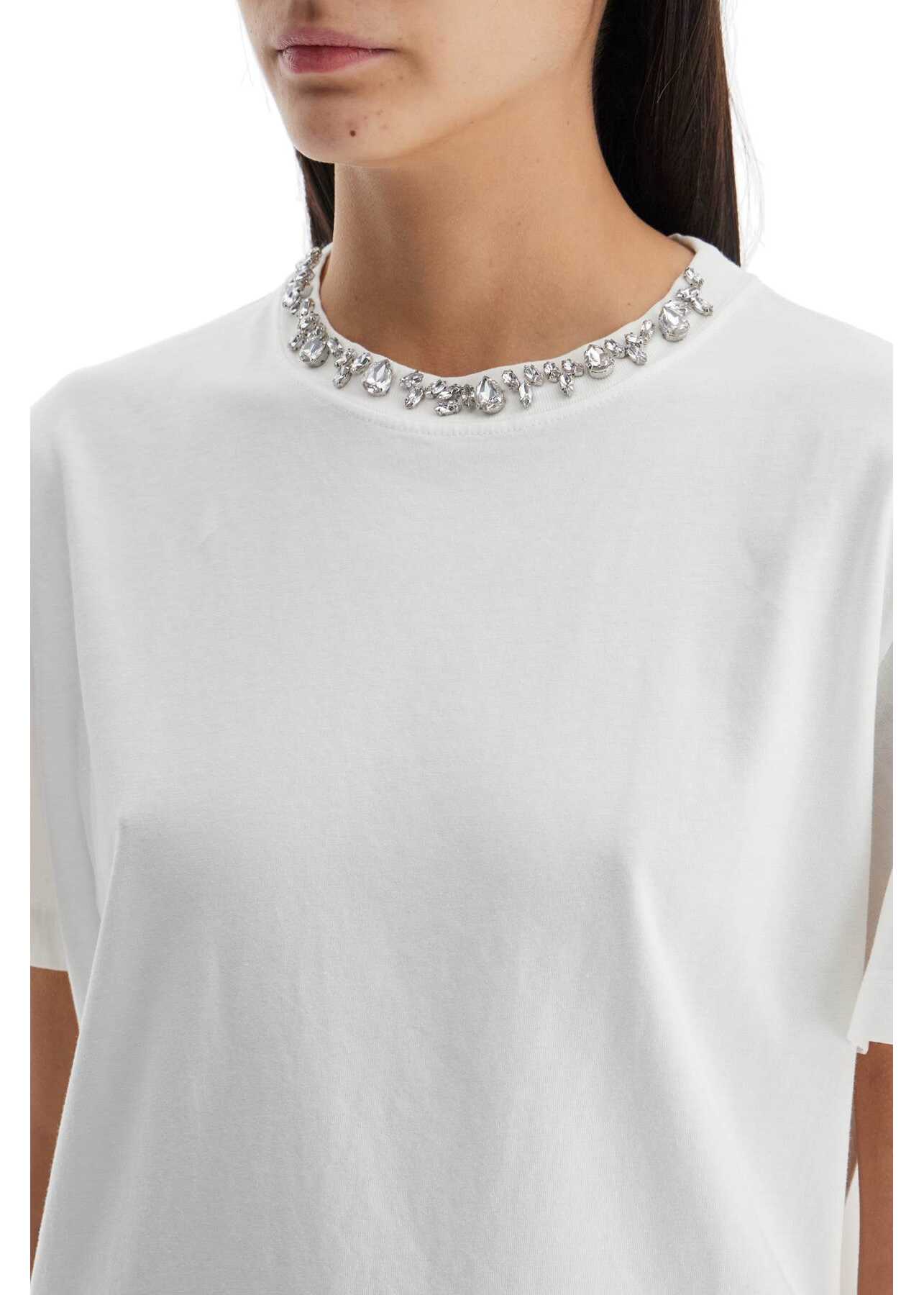The Golden Goose Women's T-Shirt offers casual-chic elegance. Made from vintage cotton with rhinestone embroidery on the neck, it combines comfort and Italian style. Perfect for versatile and refined looks.