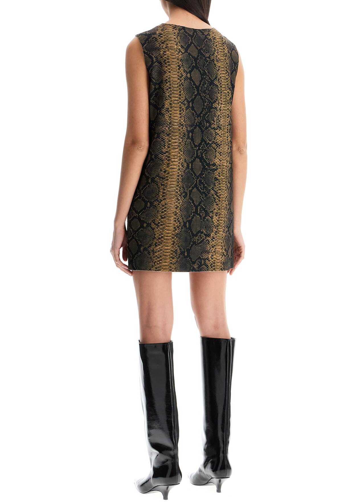 NORMA KAMALI Mini Dress sleeveless with brown python print. Made of polyester and elastane, it offers elegance and comfort. Perfect for cultural events and elegant evenings.