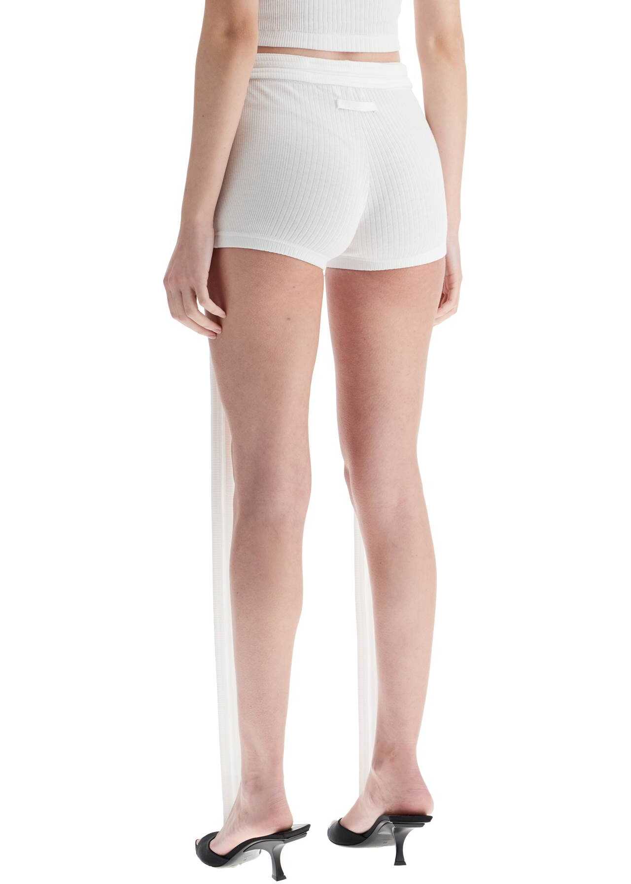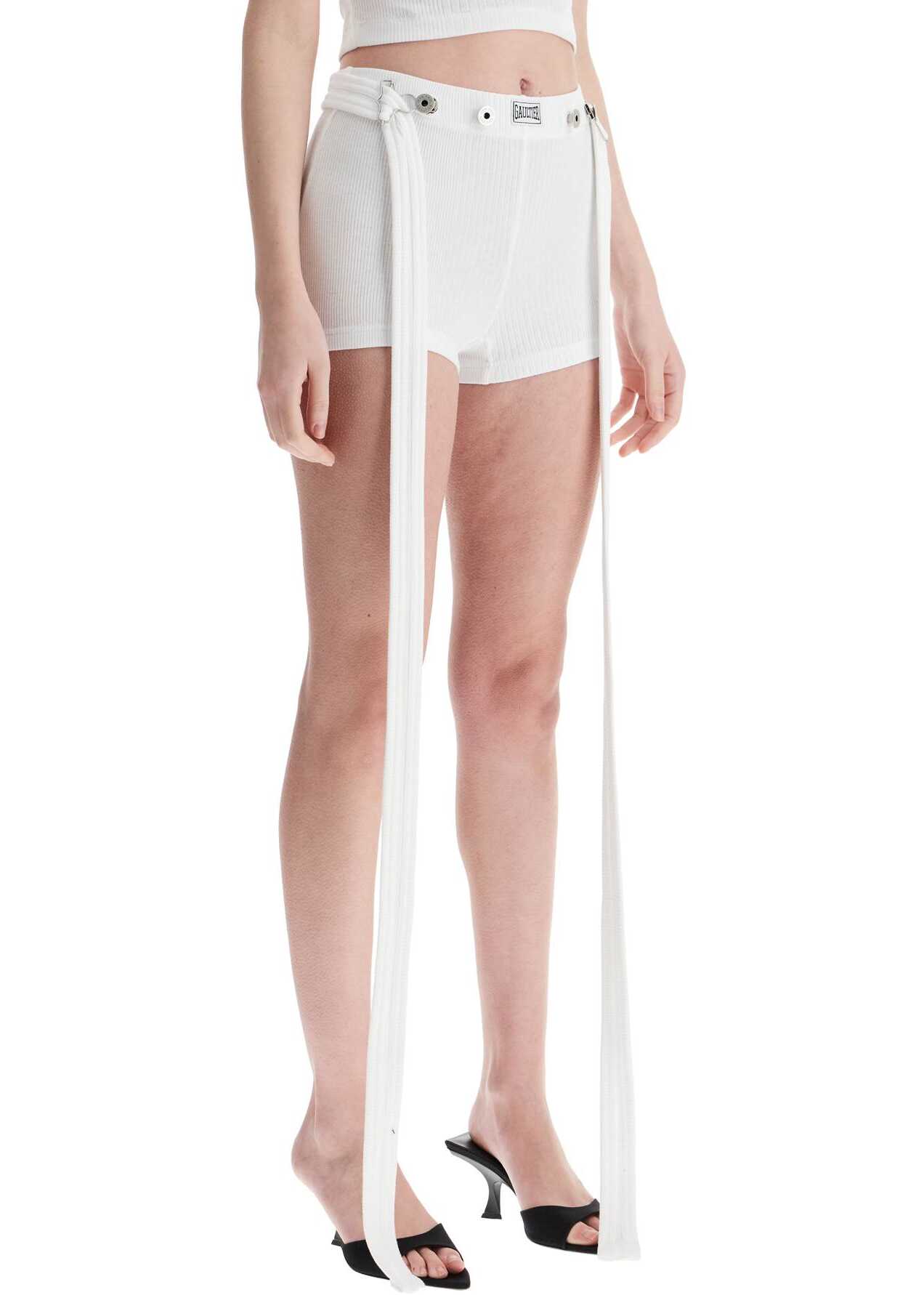 Jean Paul Gaultier women's shorts in white cotton offer summer elegance. High-waisted slim fit with unique details. Perfect for spring summer fashion combining comfort and exclusive style.