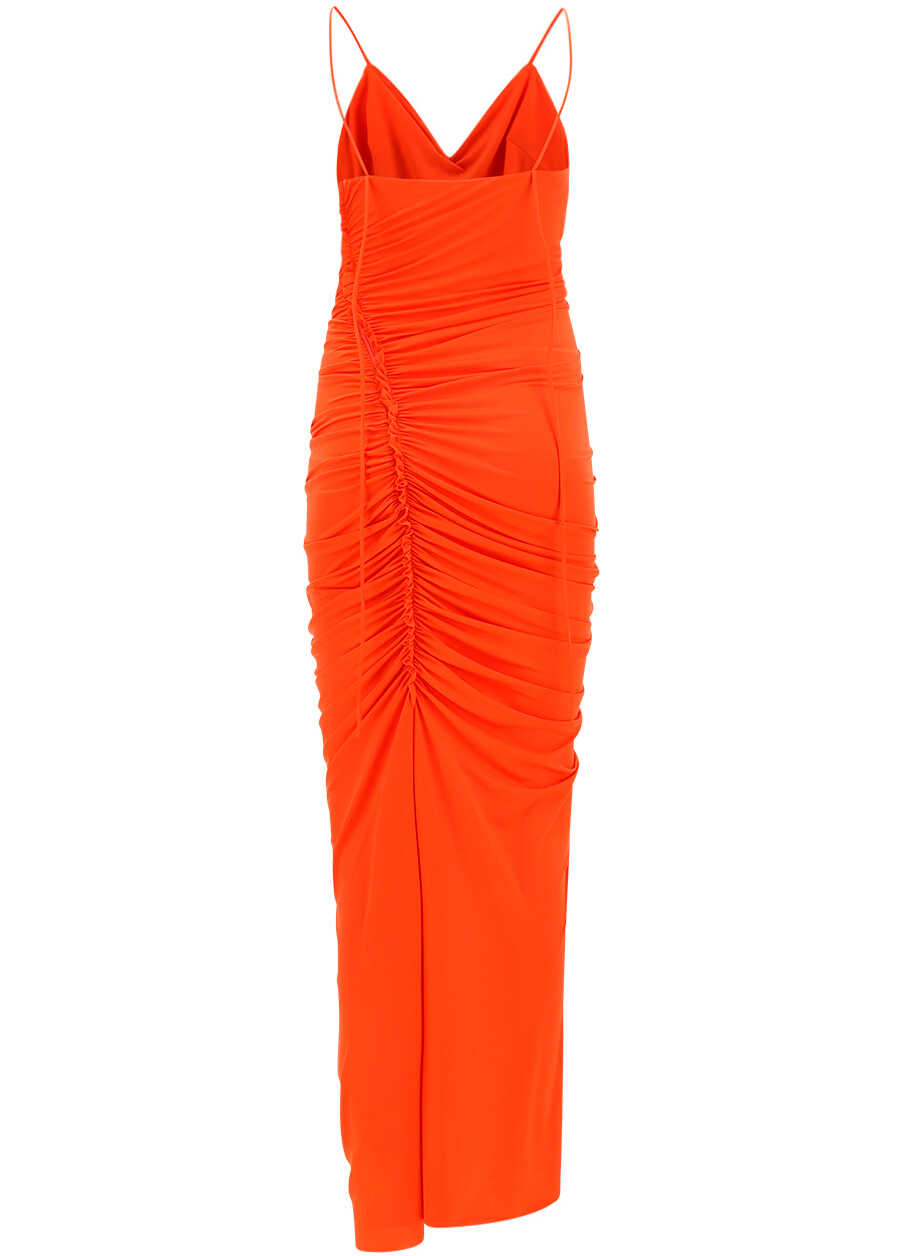 Dress by Victoria Beckham, thin straps, side zip fastening, fabric with ruching effect on front and back, monochrome pattern, slim fit.