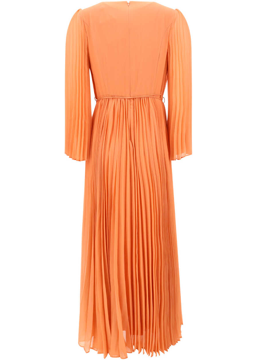 Sunray Midi Dress by Zimmermann, V-neck front, all-over pleated design, wide three-quarter length sleeves, back zipper closure, waist belt loops, removable lace with floral detail, monochrome pattern.