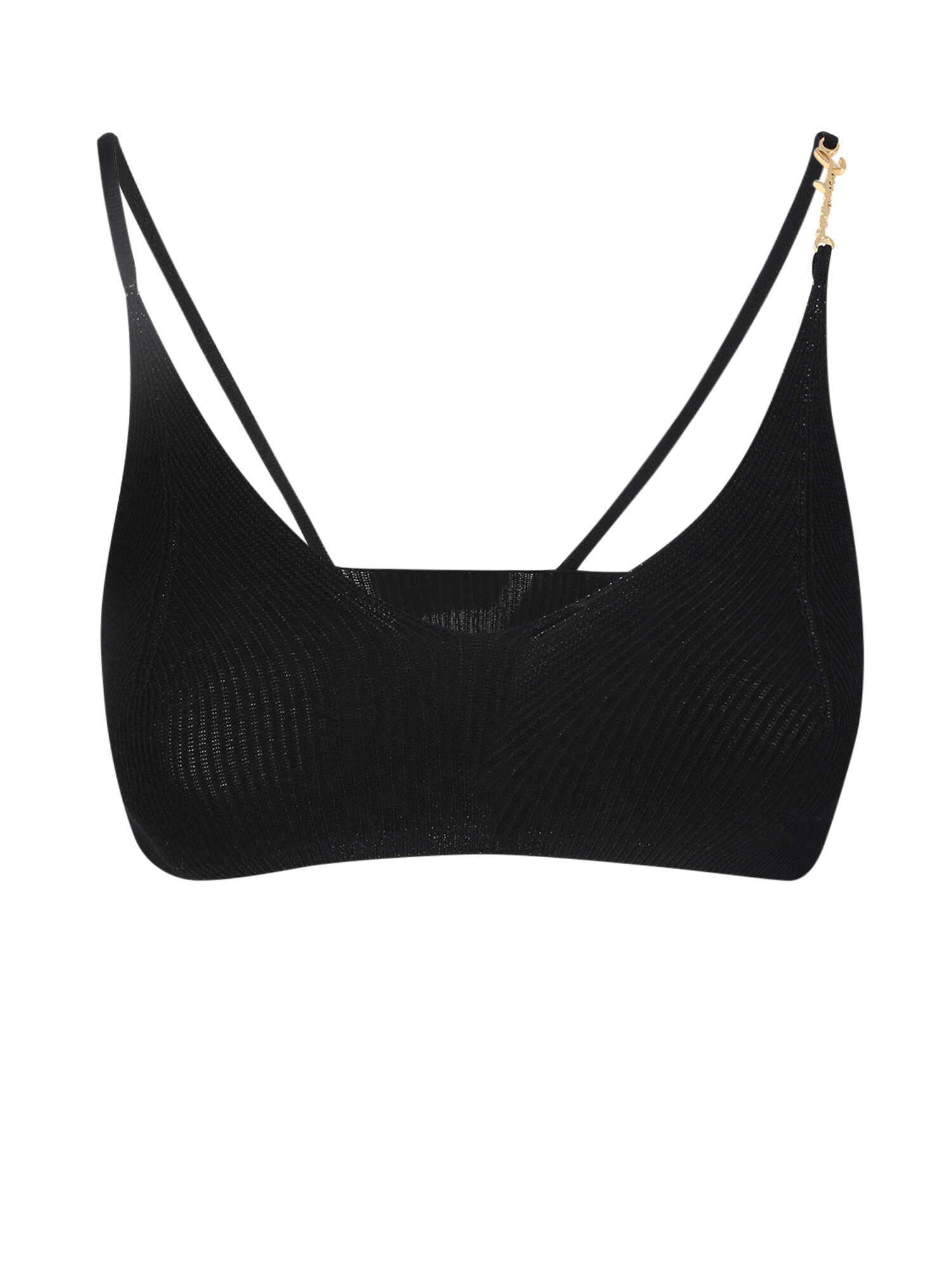 Add a touch of elegance to your wardrobe with the JACQUEMUS Black Tops. This fitted top features a V-neck, spaghetti straps, and a ribbed-knit design. The gold metal charm logo on the left shoulder strap adds a stylish touch. Made from a blend of 90% Viscose, 10% Polyamide, and 10% Polyester, this top is both comfortable and fashionable. Perfect for any occasion, this top is a must-have for every fashion-forward woman.
