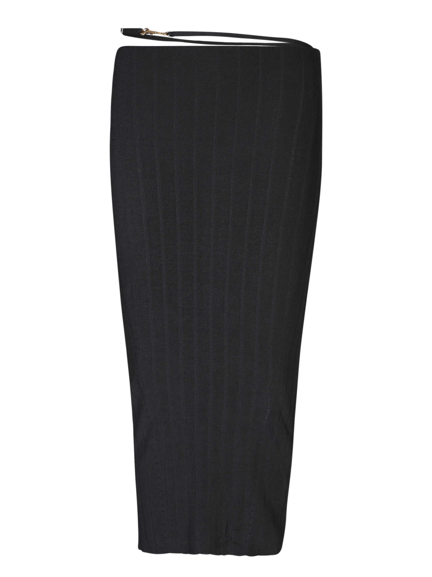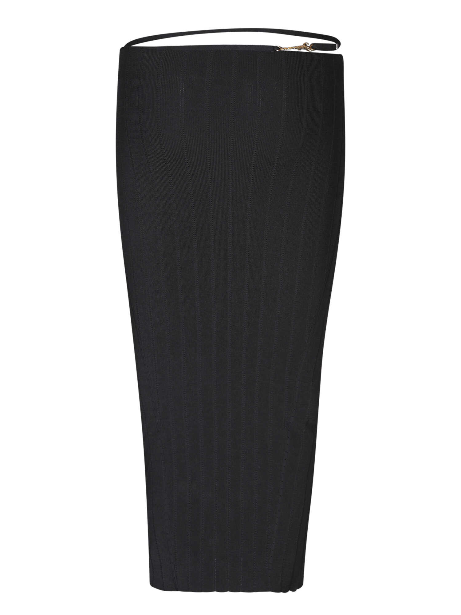 Viscose skirt by Jacquemus. Straight cut. Midi length. Ribbed fabric. Perforated details. High waist. Gold-tone metal charm.