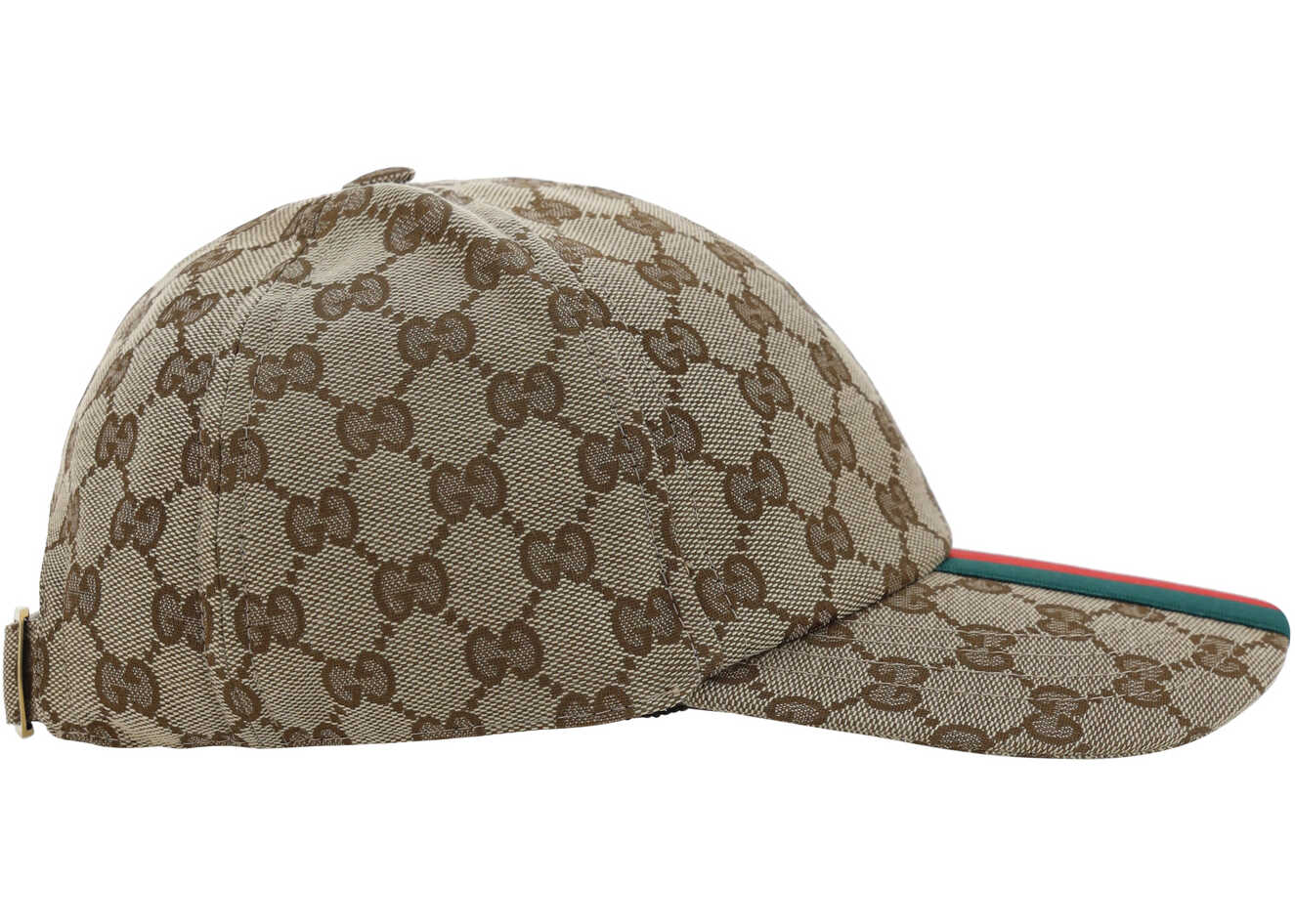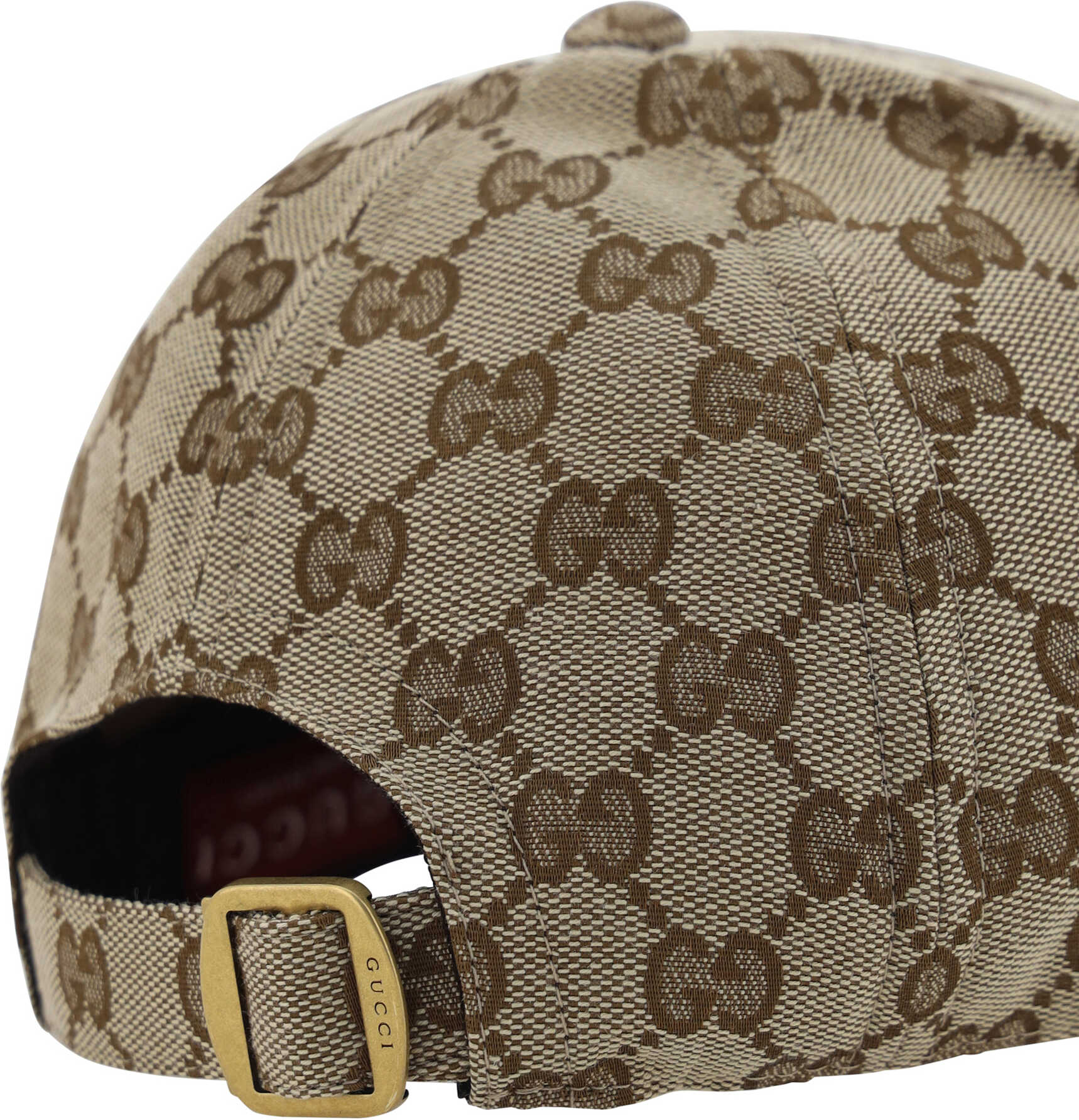 Baseball Hat by Gucci, iconic GG Supreme all-over jacquard print, iconic webing bands on visor, adjustable back closure.