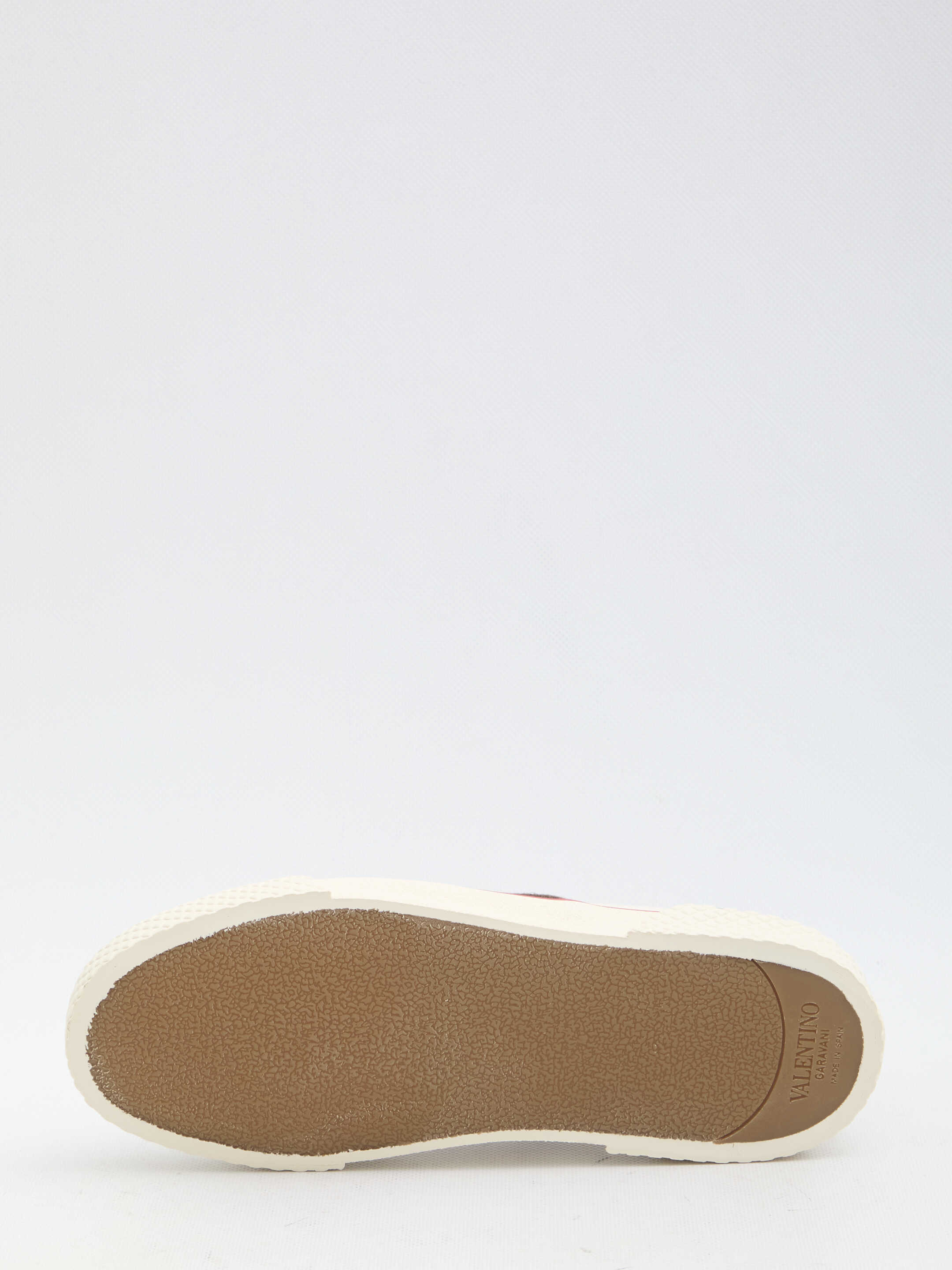 Nojoke sneakers in cream canvas fabric with brown trim. They feature a leather patch with Vlogo signature detail and a rubber sole. Dust bag included. Additional laces included. Any leather imperfections are not to be considered manufacturing defects, but a peculiarity of the material.