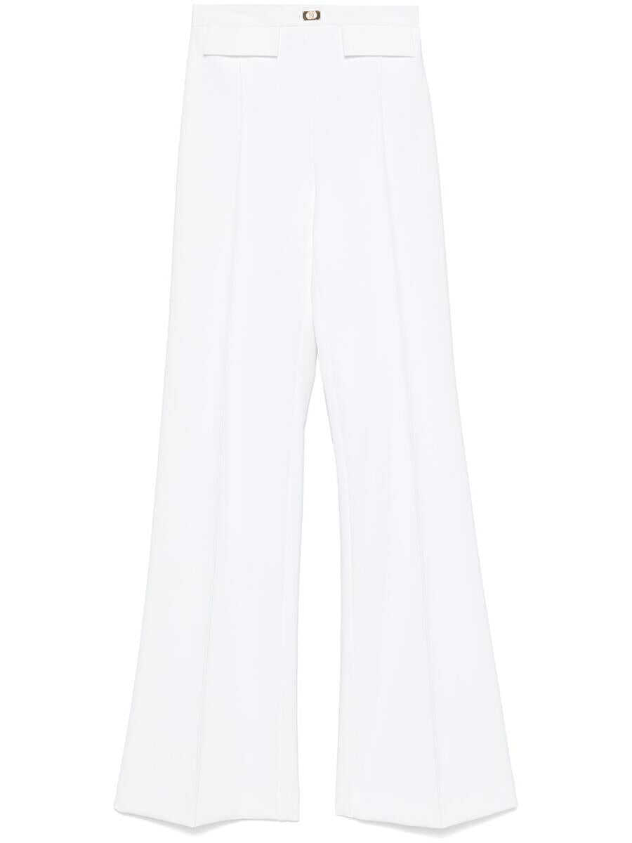 Stretch crepe pants with applied flaps on the front and ribbing that define the look. The waistband is decorated with a gold metal logo plaque. With slim fit and invisible zipper at the hip, they are a versatile and sophisticated piece for the ideal wardrobe.