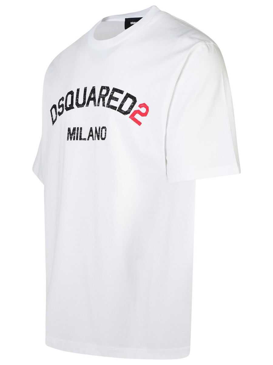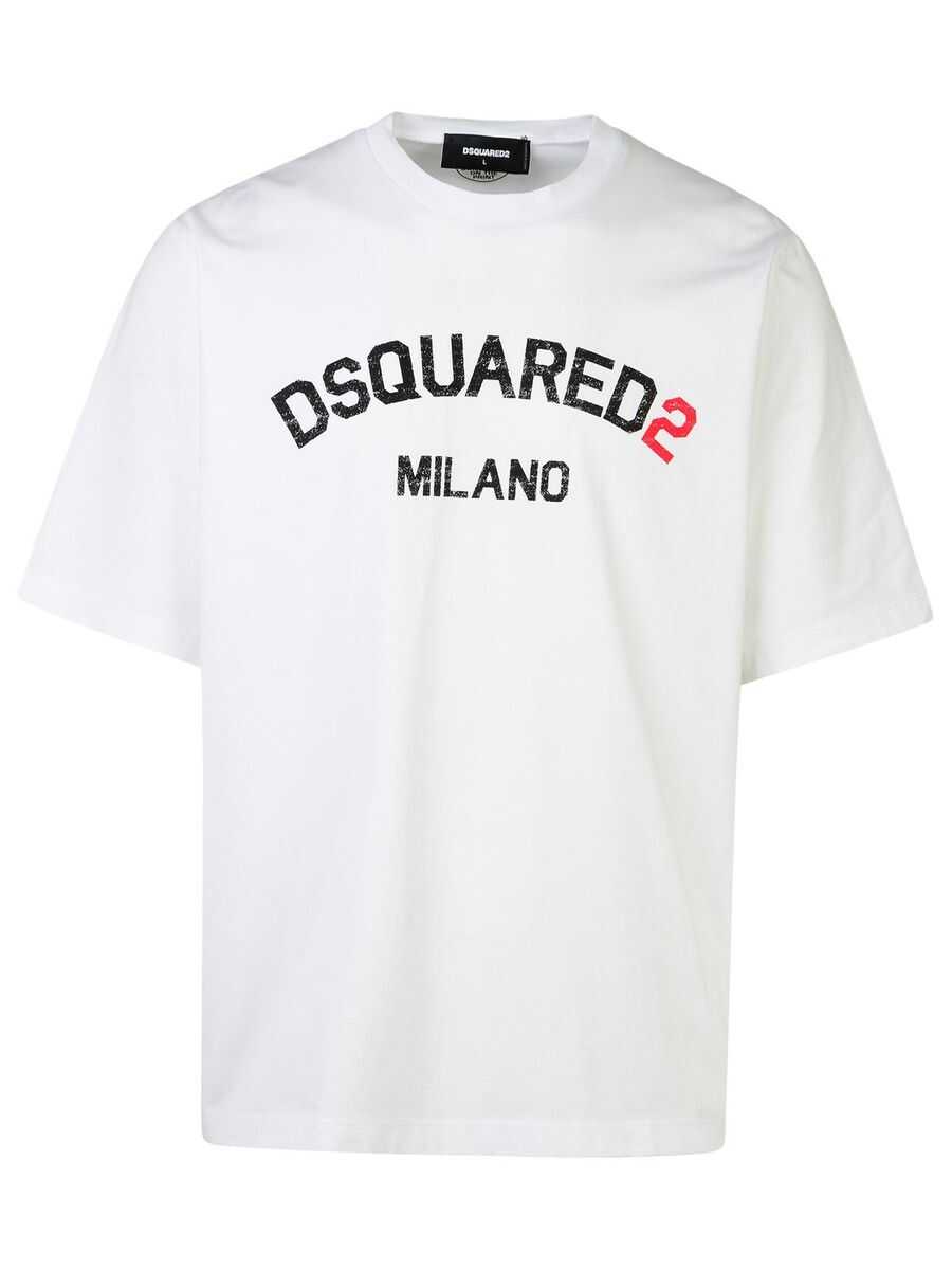 Crew-neck t-shirt with short sleeves. Ribbed hems. Dsquared Milano print on the front. Loose fit.