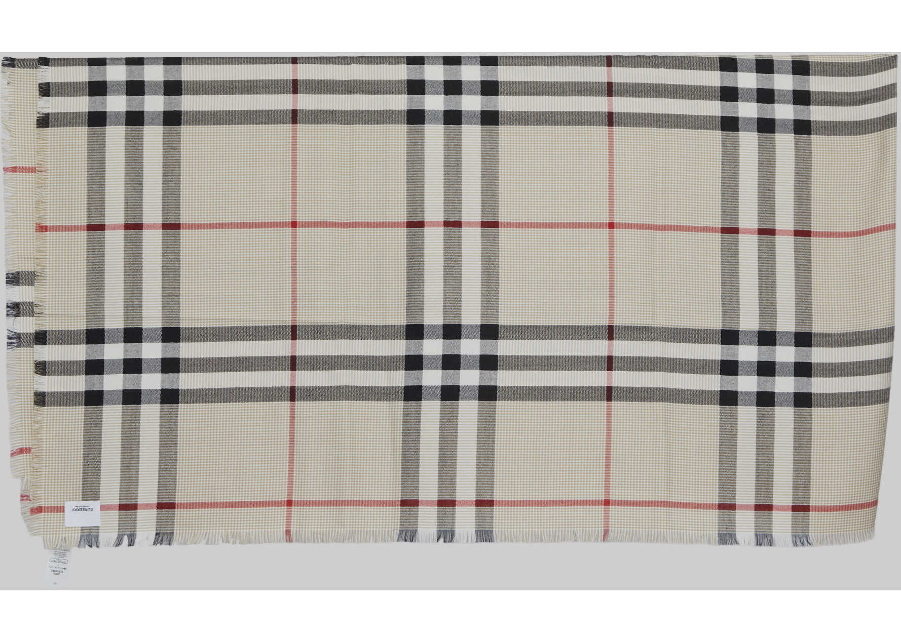 Scarf in soft silk and cashmere blend in the shades of beige with all-over Check motif. Frayed hems.