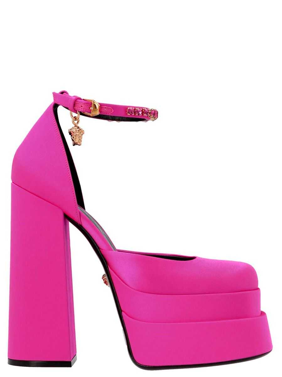 Medusa 'Medusa aevitas' satin pumps featuring a strap embellished with sequins and a Medusa charm