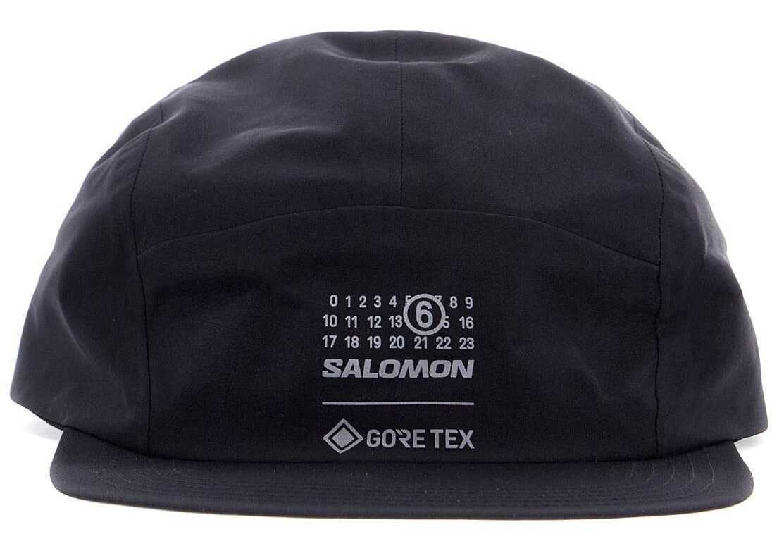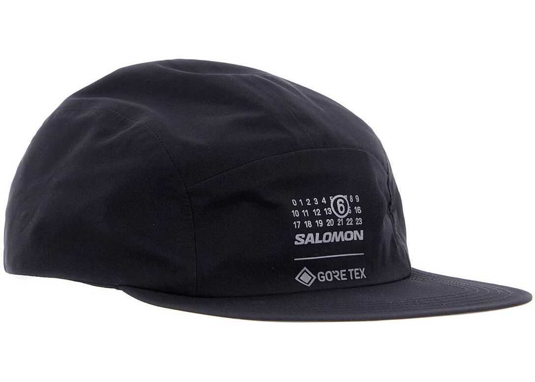 The MM6 Maison Margiela x Salomon baseball cap features a deconstructed design and is made from technical fabric with a logo print on the front. It has an adjustable drawstring at the back and is unlined. One size fits all.