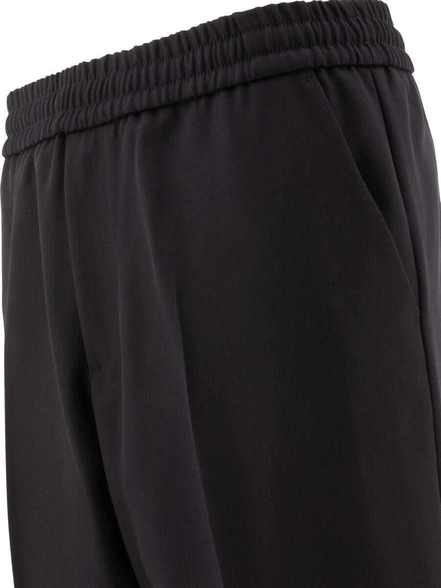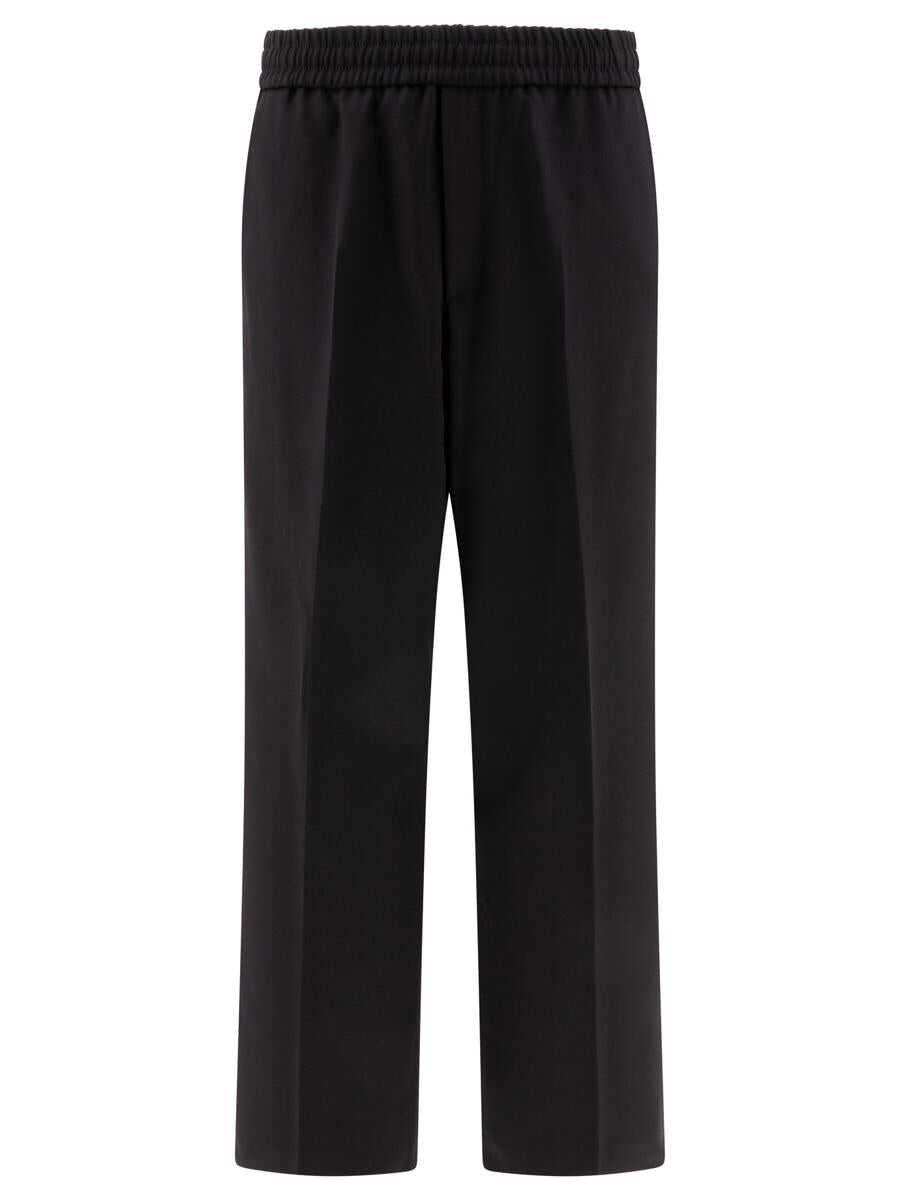 blue virgin wool blend pressed crease elasticated waistband two side slit pockets rear patch pocket
