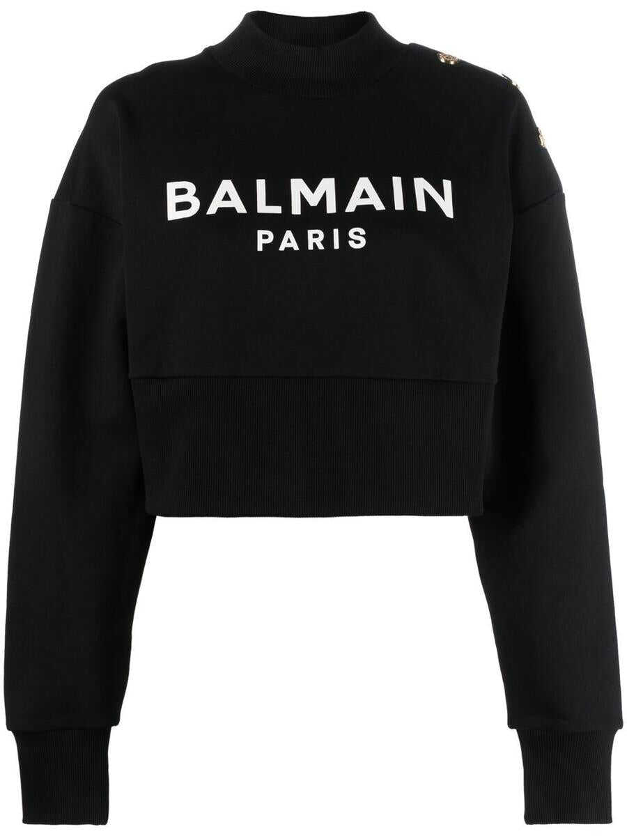 black cotton jersey fleece logo print to the front crew neck long sleeves fitted-cuff sleeves cropped Conscious: This item is made from at least 50% organic materials