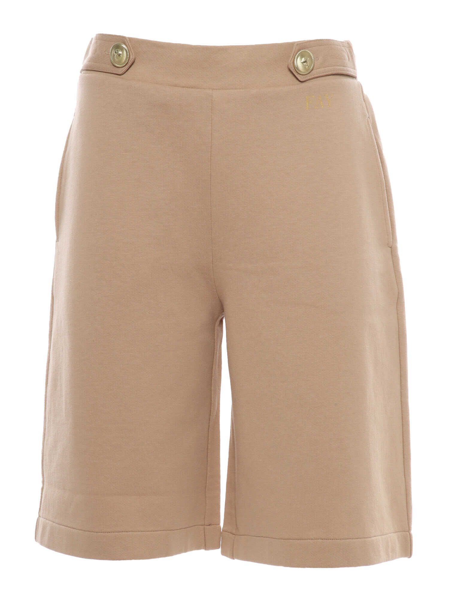 Cotton blend shorts, logo print, bands with gold-finish logo button, side pockets