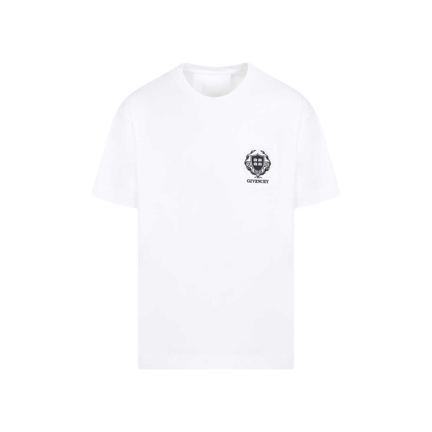 Givenchy White Cotton Casual Short Sleeve Front Pocket Base T-Shirt. Pure white cotton t-shirt, round neck, contrasting black logo on the chest, short sleeves, straight hem.
