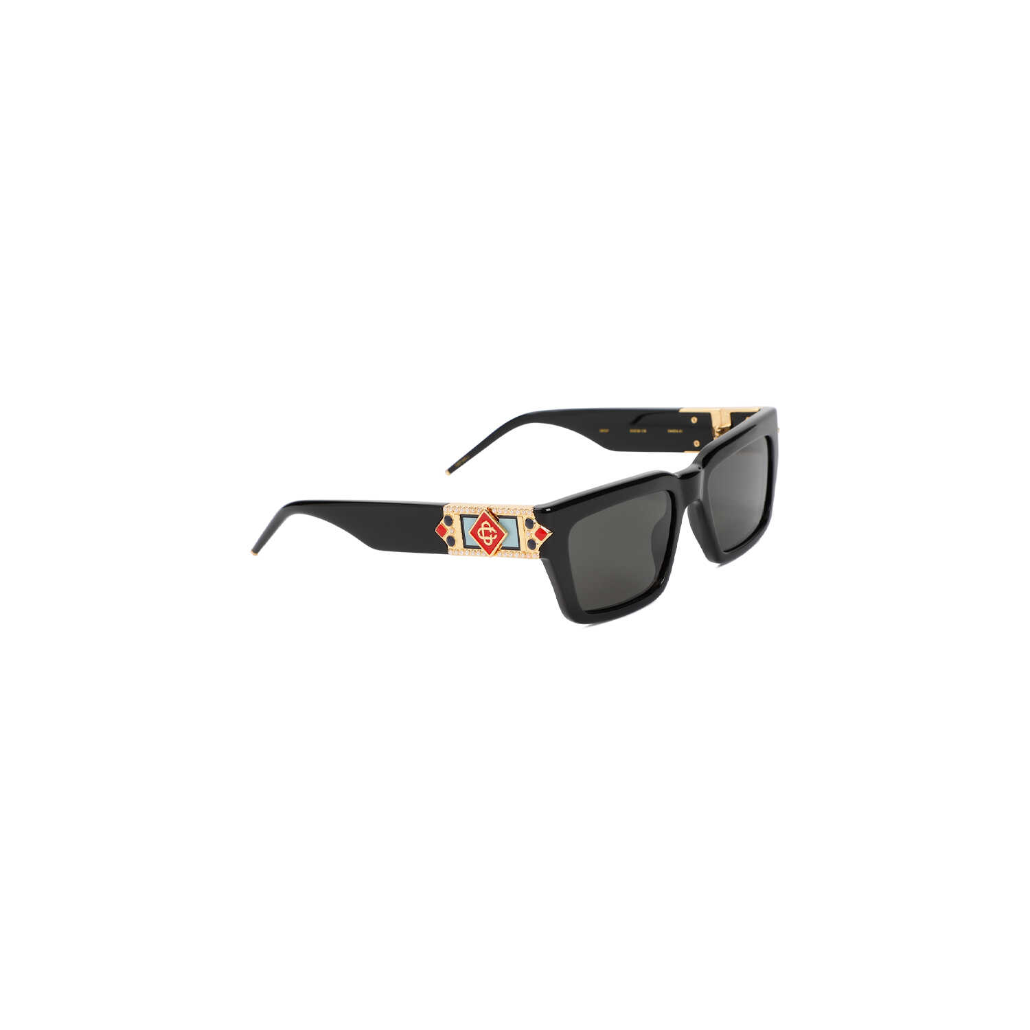 Elevate your style with the CASABLANCA EW05801M sunglasses. Featuring a sleek black acetate frame and bold black lenses, these sunglasses are the perfect accessory for any modern man. The signature multicolor plaque on the temples adds a touch of sophistication. Made from high-quality acetate and metal, these sunglasses are both durable and stylish. Stand out from the crowd with CASABLANCA.