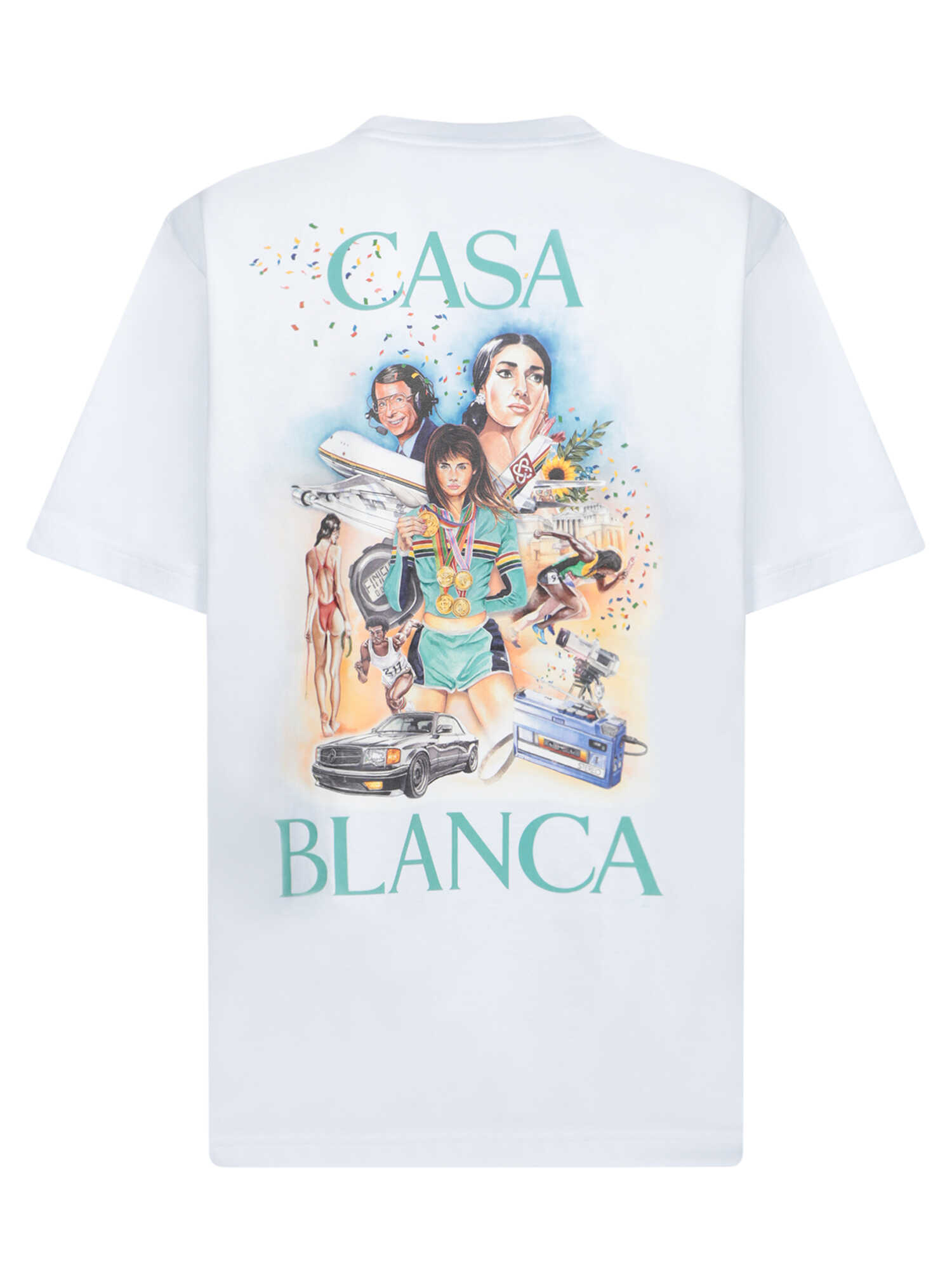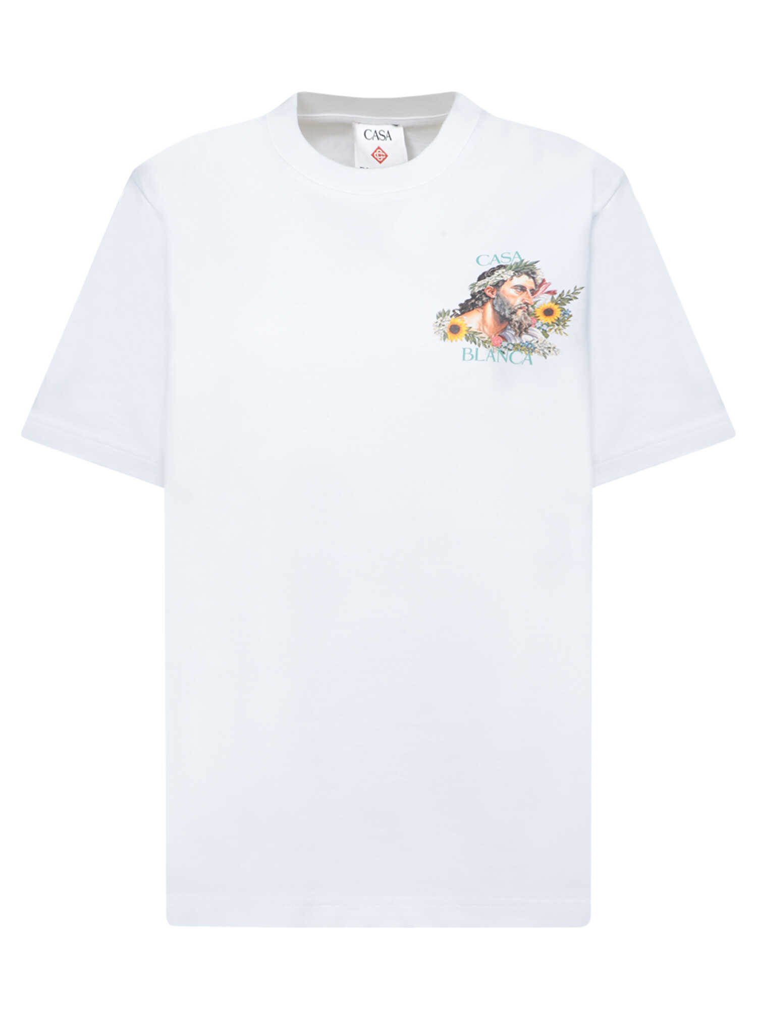Elevate your wardrobe with the CASABLANCA White T-Shirt, crafted from 100% organic cotton for ultimate comfort and style. Perfect for casual outings or a relaxed day at home, this versatile tee is a must-have for every modern man's collection.
