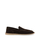 brown calf suede logo plaque almond toe branded leather insole flat rubber sole