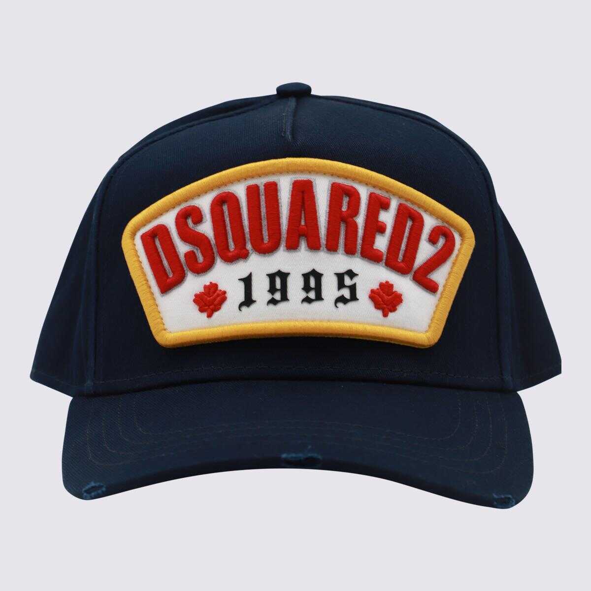 Blue cotton baseball cap from DsQuared2 featuring rear adjustable fit, slip-on style and curved peak.