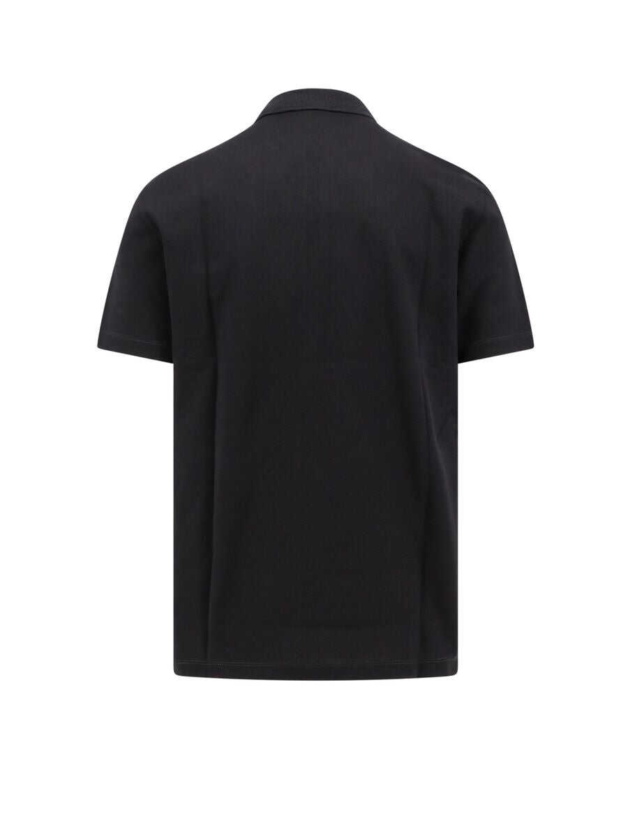 black piqué weave appliqué logo polo collar front button placket short sleeves straight hem