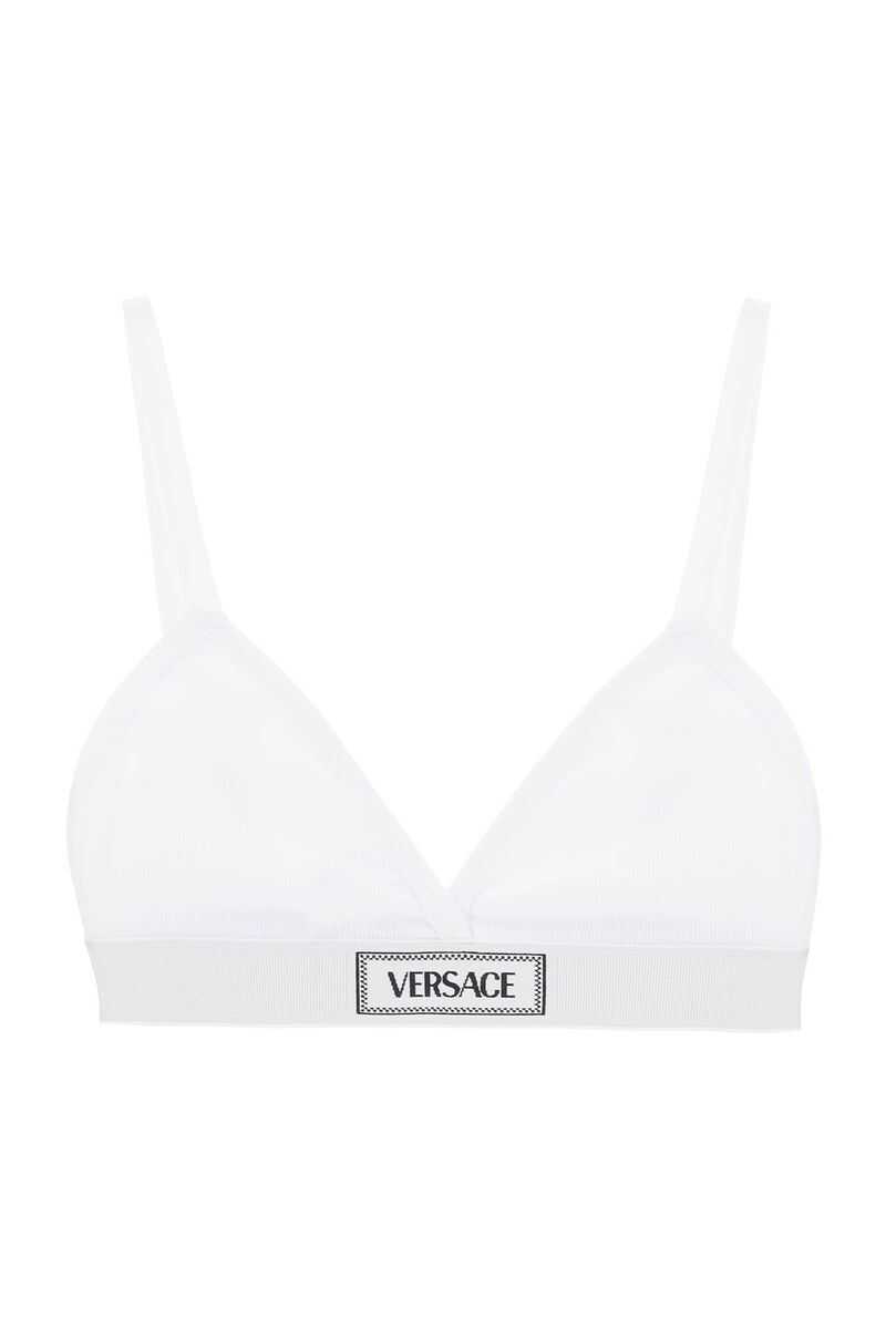 - Bra with logo embroidery - White - In stretch cotton - Ribbed - Embroidery with '90s Vintage logo - Adjustable straps - Elasticated waist