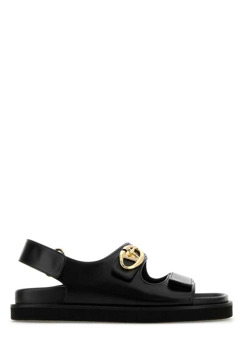 Leather sandals, straps with gold metal 'VLogo Locker' turn-around closure, heel