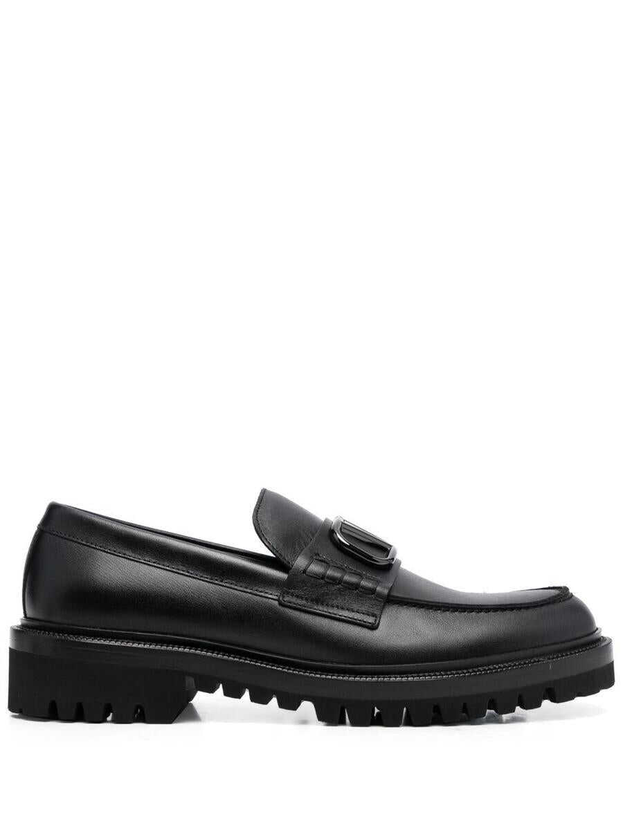 black calf leather VLogo Signature slip-on style round toe flat rubber sole branded insole