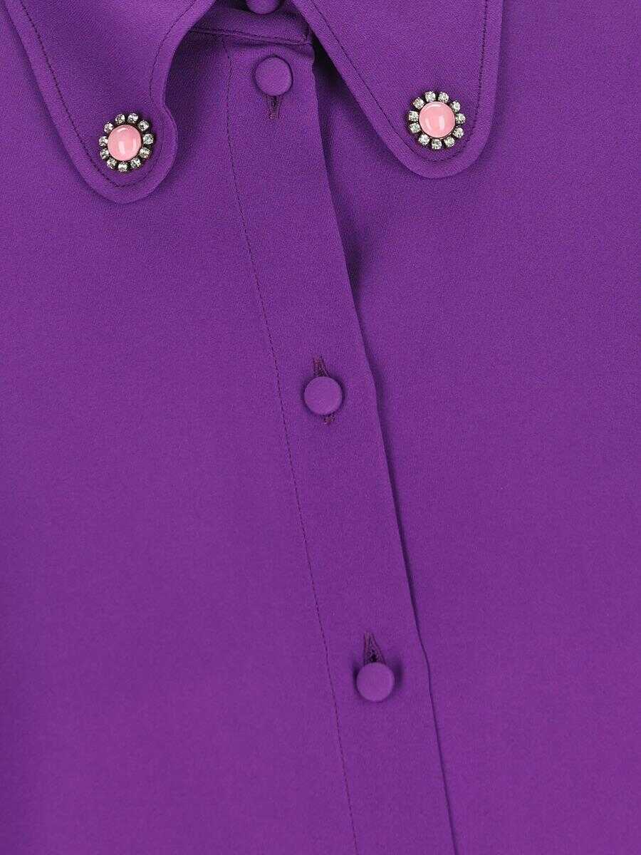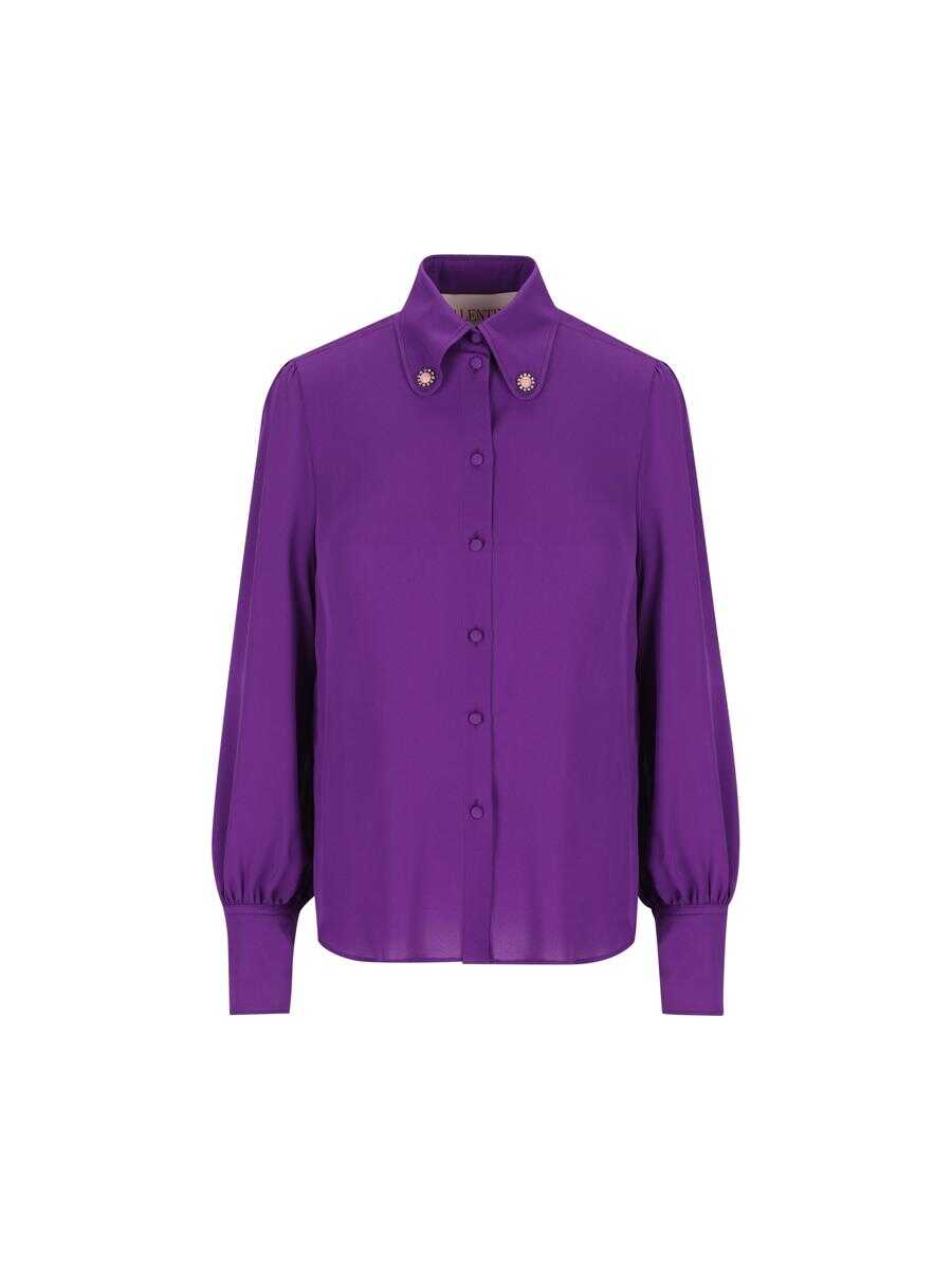 - Material: 100% silk - Color: purple - Unlined - Other details: Daisy jewel button detail on collar - Front button closure - Made in Italy - Item number: 6B3AB7A51MHR1B