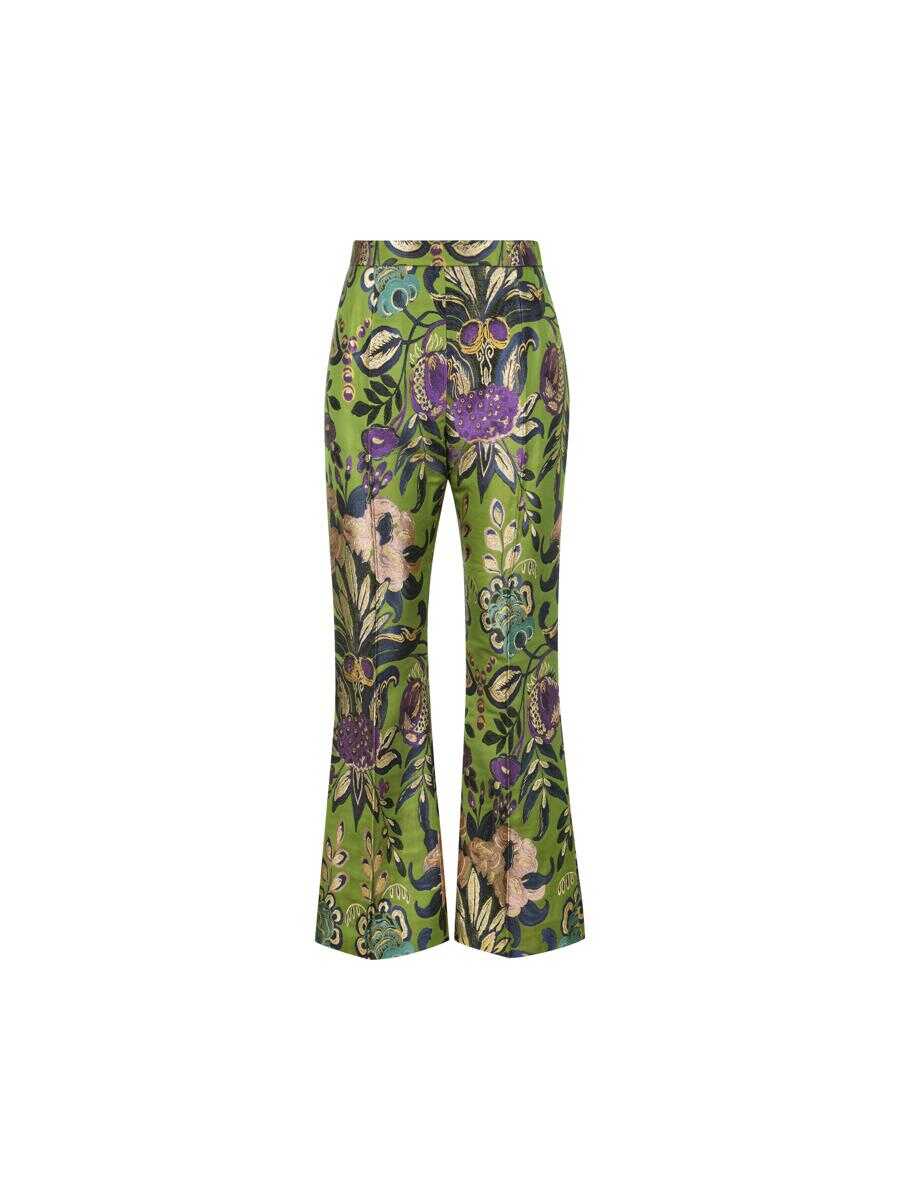 - Material: 87% Acetate, 9% Silk, 4% Metallic Fibers - Color: green - Lining: 100% silk - Other details: all-over floral print - Side zipper and hook closure - Made in Italy - Item code: 6B3RB64591PRE3