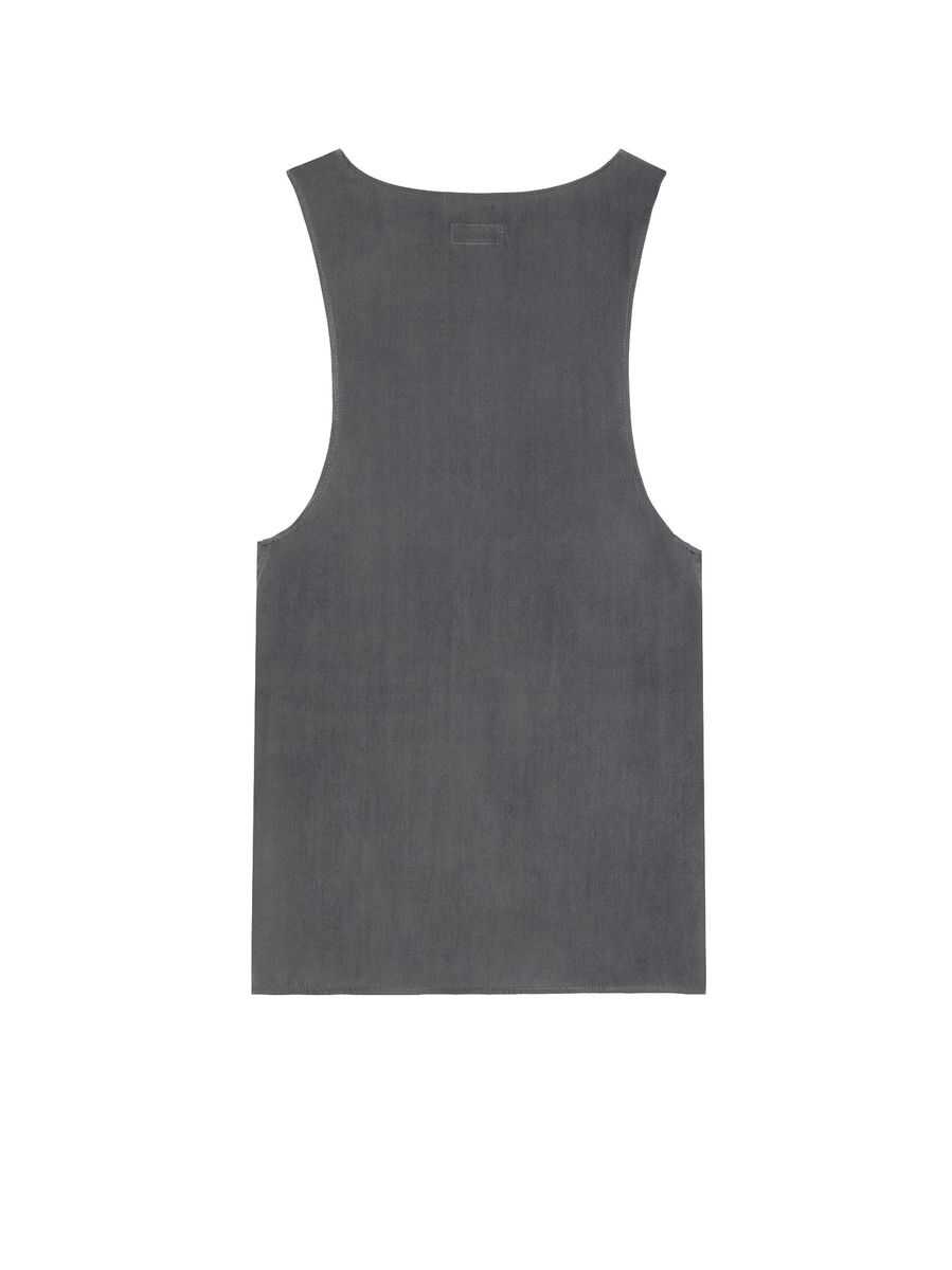 Saint Laurent's tank top crafted in dark grey crêpe de chine. It features U neck, concealed three-button placket and straight hem.