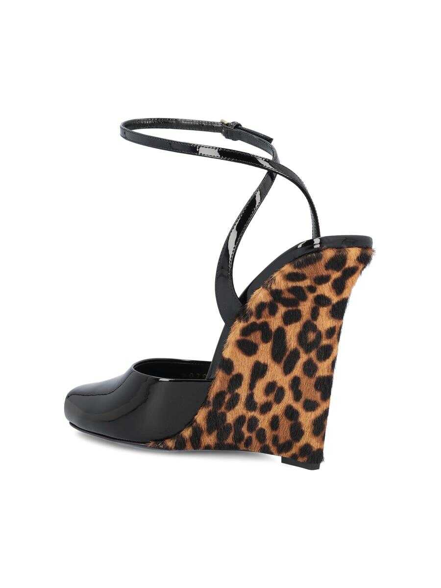 - Upper: 100% calfskin - Color: black and brown - Leather sole - Heel height: 110 mm - Other details: leopard print wedge heel - Made in Italy - Box included - Item number: 8076421TV001000