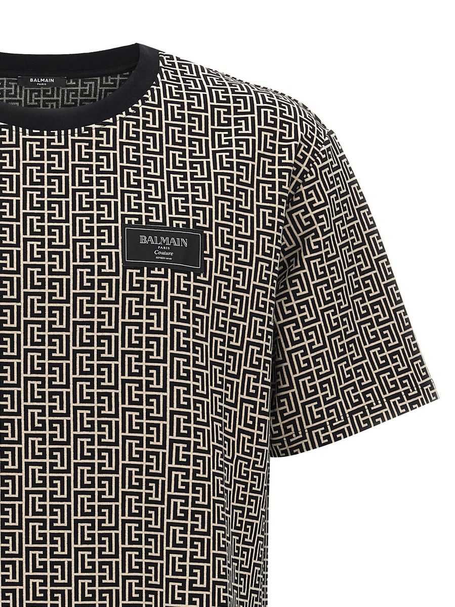Jacquard cotton t-shirt with all-over labyrinth PB monogram pattern, crew neck, front logo patch, short sleeves.