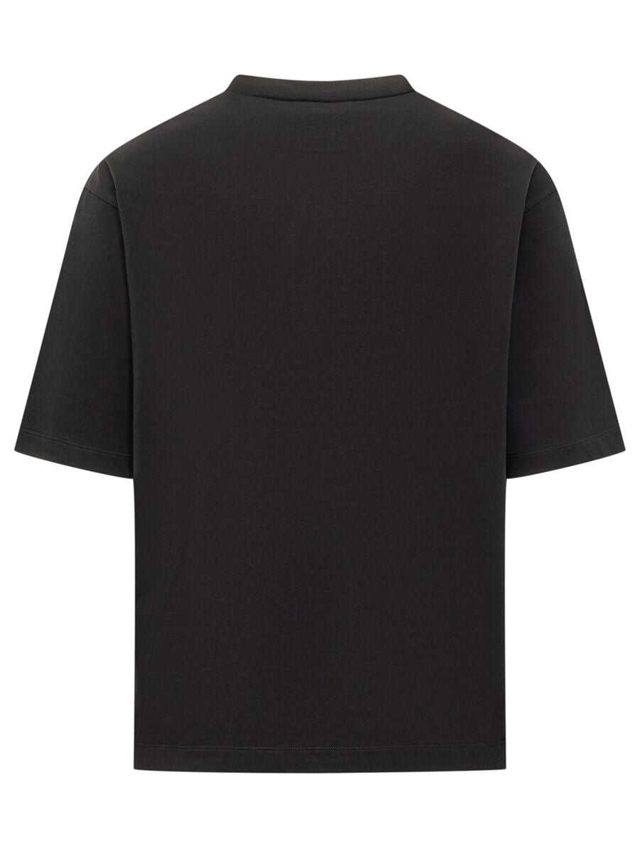 Black cotton T-shirt. Crew neck. Contrasting logo print.