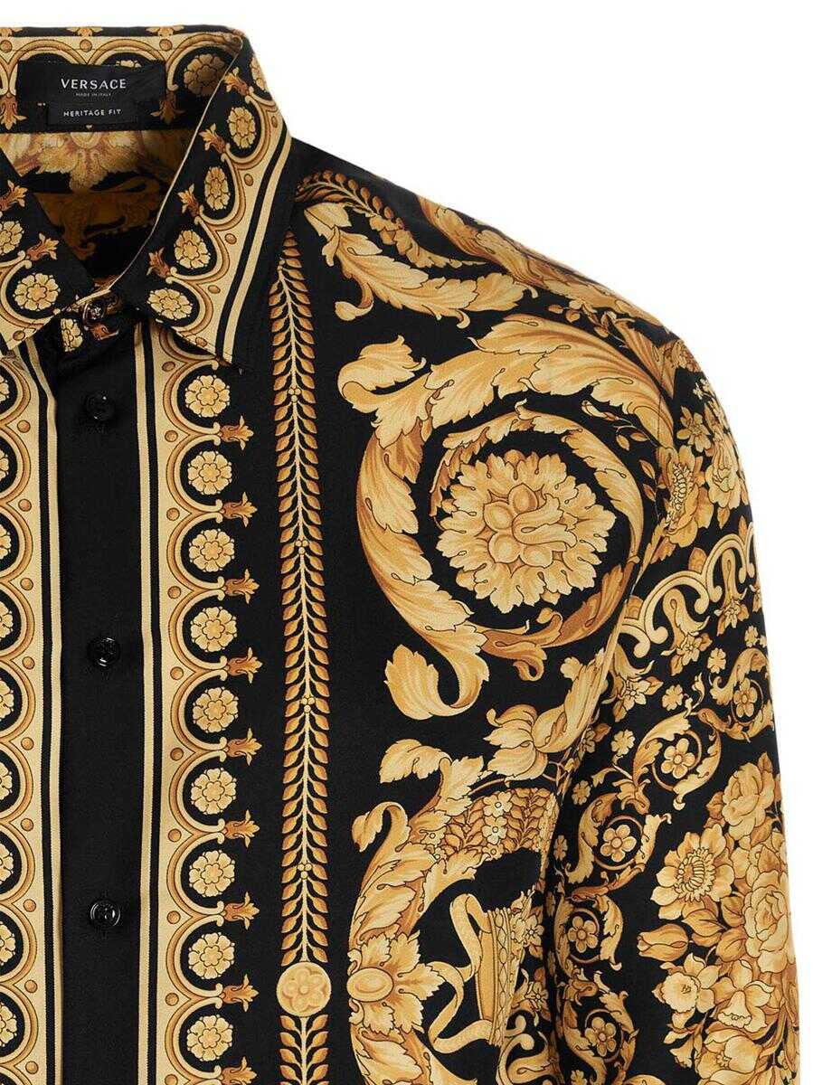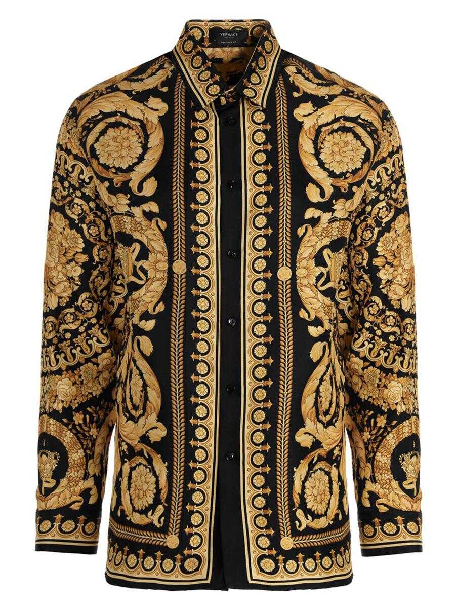 Silk shirt, with all over 'Barocco' print, long cuffed sleeves and a button closure