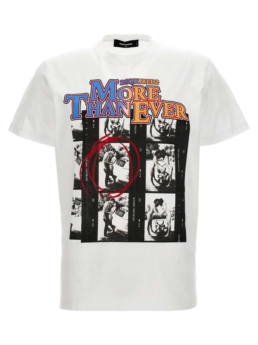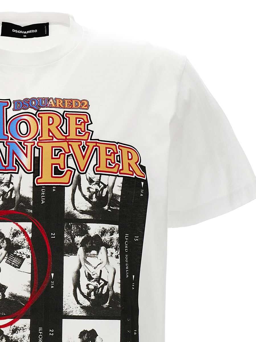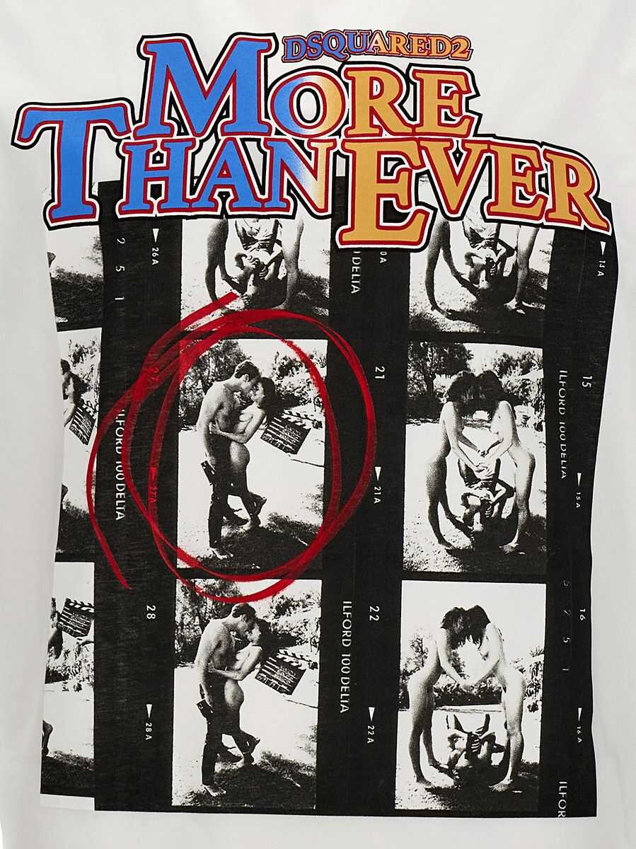 White multicolour cotton T-shirt from Dsquared2 featuring crew neck, short sleeves, graphic print to the front and straight hem.