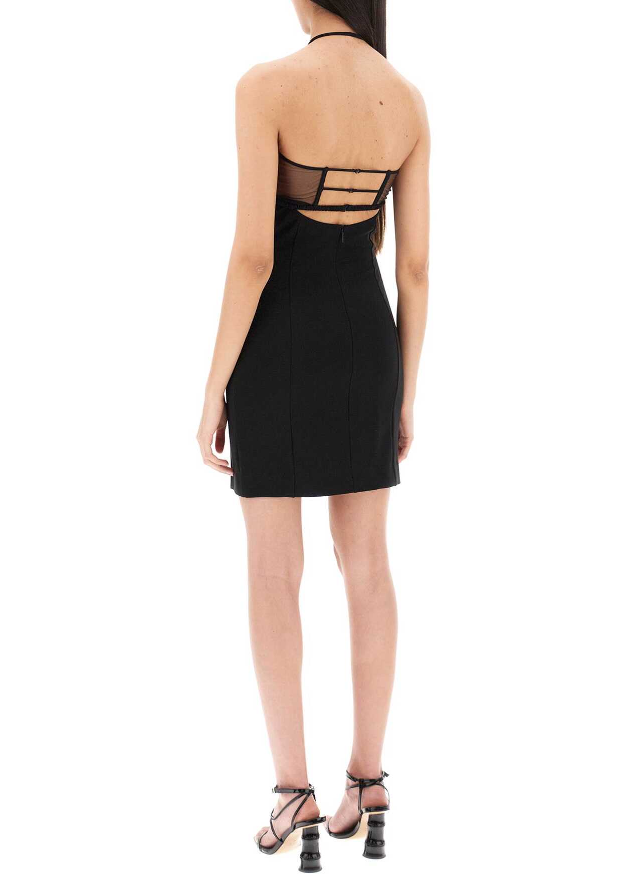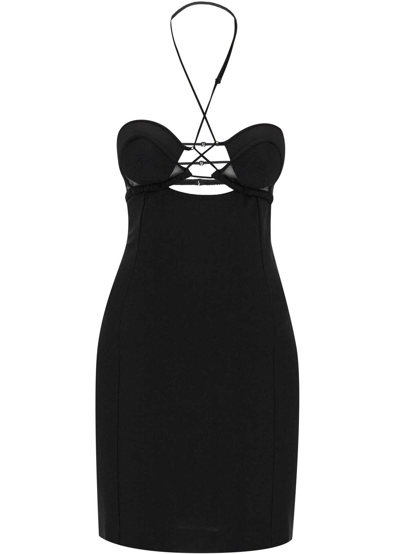 Nensi Dojaka mini dress crafted stretch viscose jersey. Characterized by a waisted silhouette, it features halterneck with adjustable criss-cross spaghetti straps, shaped cups decorated with technical mesh, front cut-out and low-cut back. Back invisible zipper and hook closure. Regular fit. The model is 177 cm tall and wears size S.