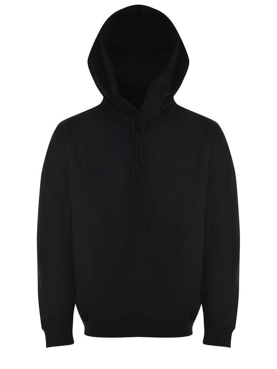 Y-3 sweatshirt in black cotton blend. Hood with drawstring. Long sleeves. Side pockets. Ribbed cuffs and bottom. Logo printed on the chest.