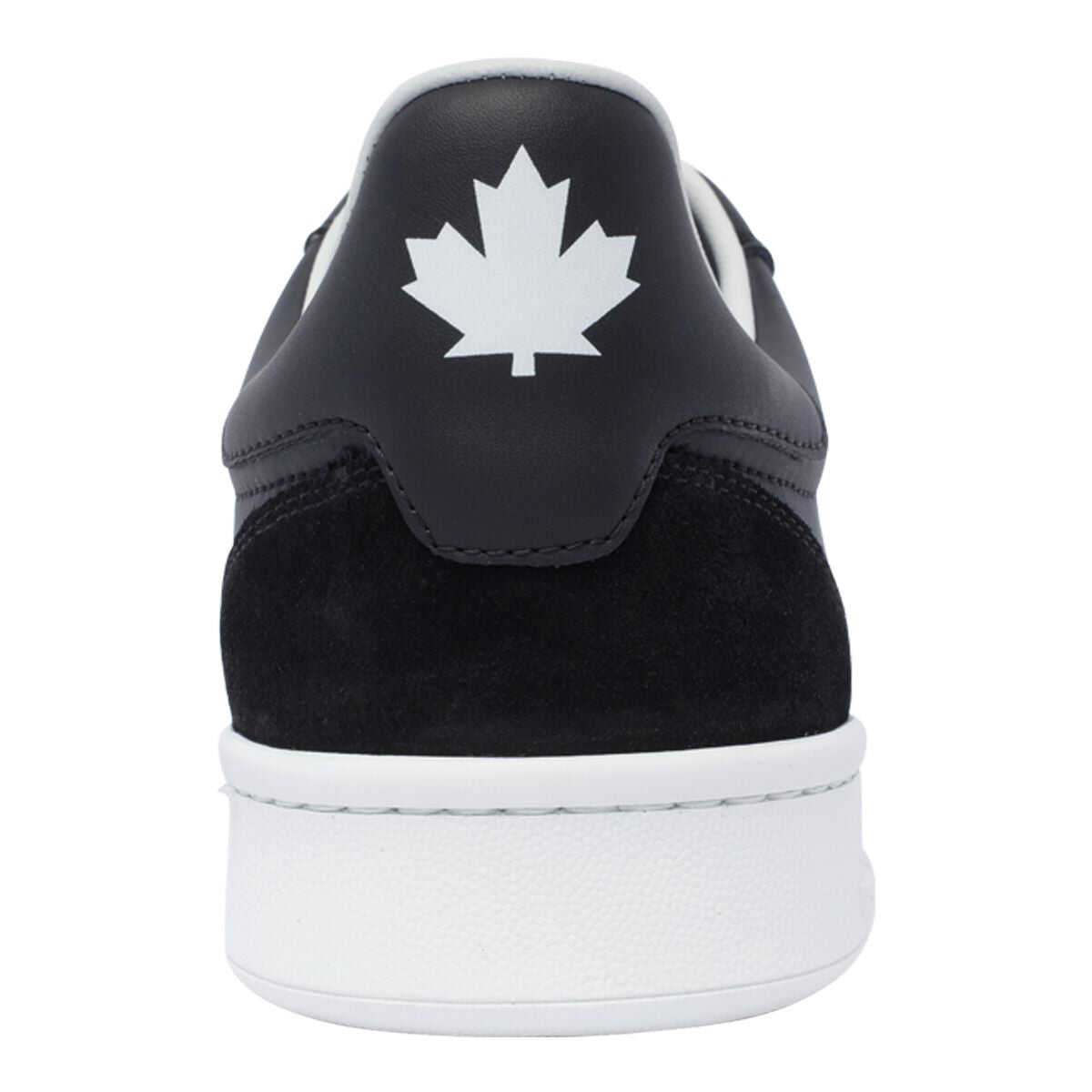 Black leather sneakers from DsQuared2 featuring round toe, cotton laces fastening, lateral stripes details, logo and leather sole.