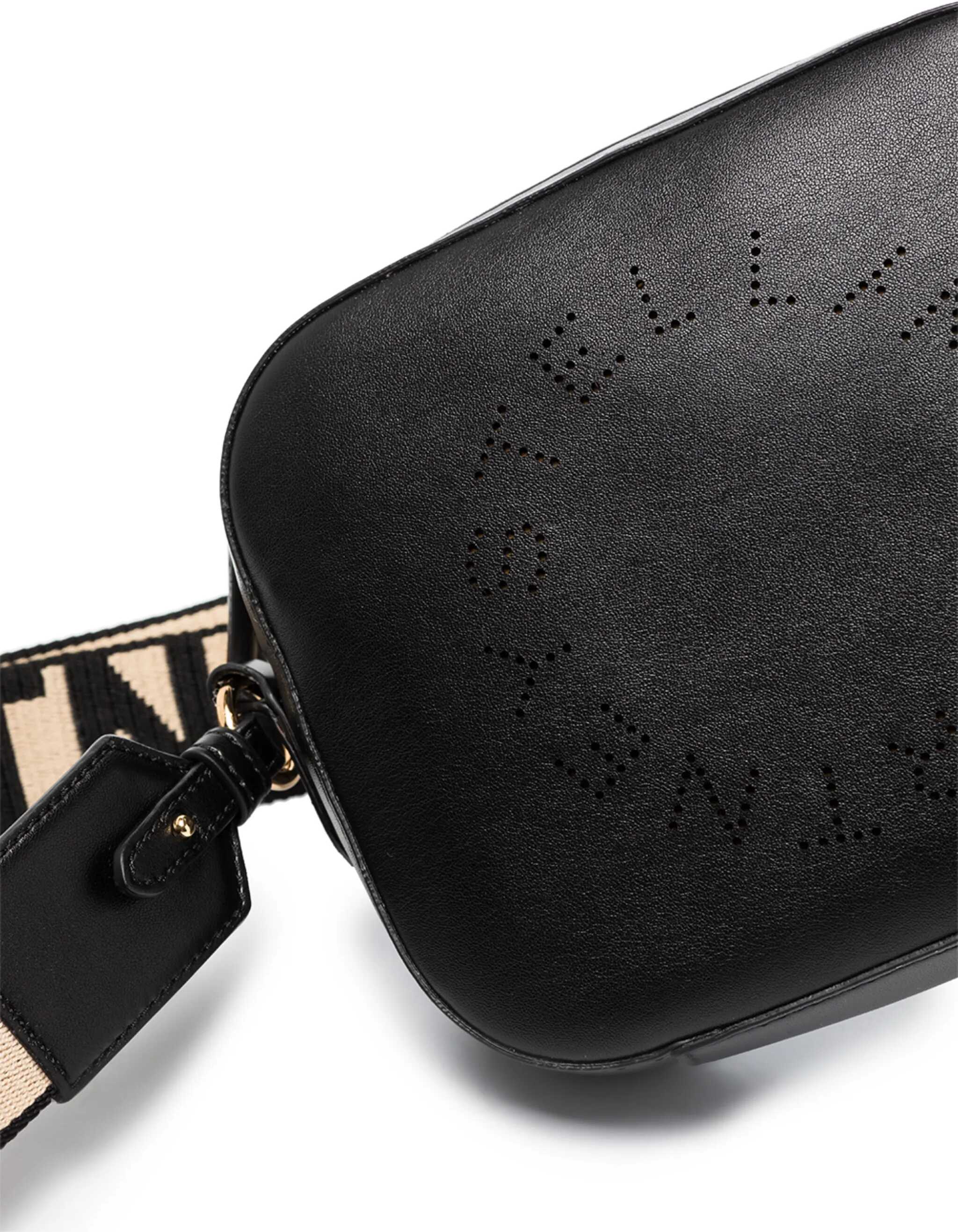 Small Camera Bag by Stella McCartney, perforated logo detail on frot, , gold-tone hardware, top zip fastening, detachable logo-embellished shoulder strap.