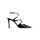 Azia 95 pumps in black patent leather. They feature pointed design, adjustable ankle strap, thin heel and suede outsole.