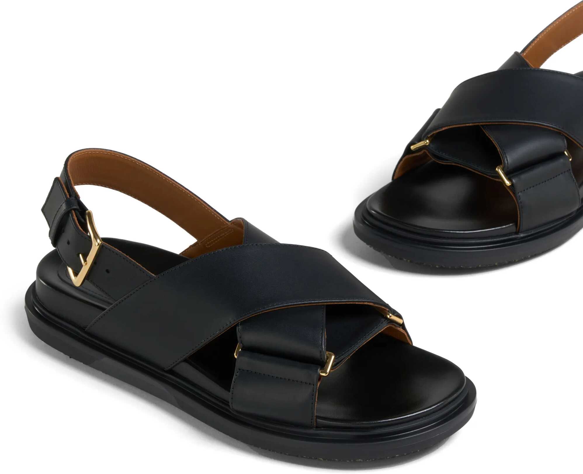 Marni's leather Fussbett Sandals combine comfort and character in an iconic design. They feature a double crisscross front strap, open toe and adjustable ankle strap for a secure fit. The insole is logo-embossed, a detail that reflects the brand's distinctive aesthetic.