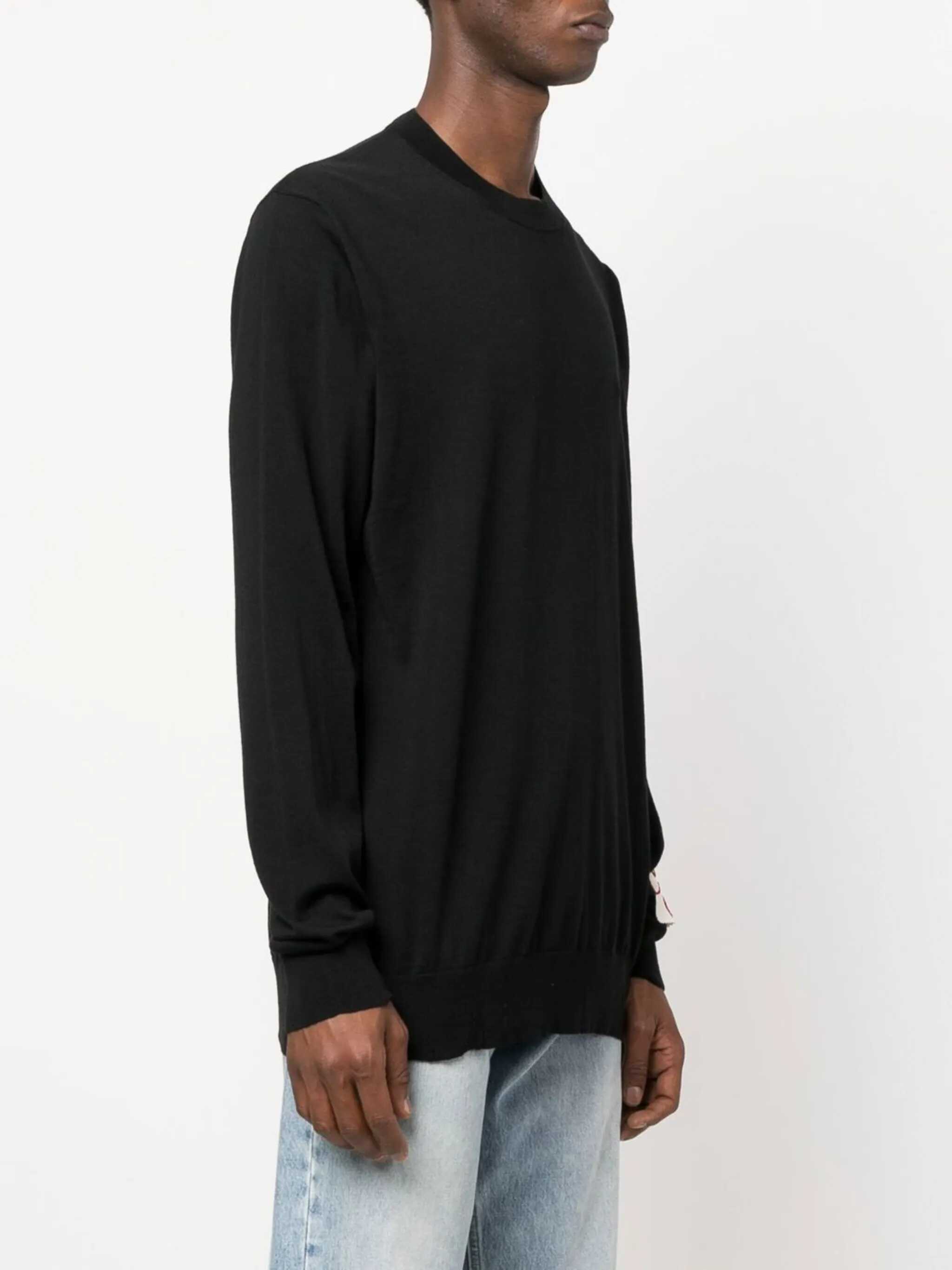 black virgin wool ribbed-knit edge crew neck long sleeves
