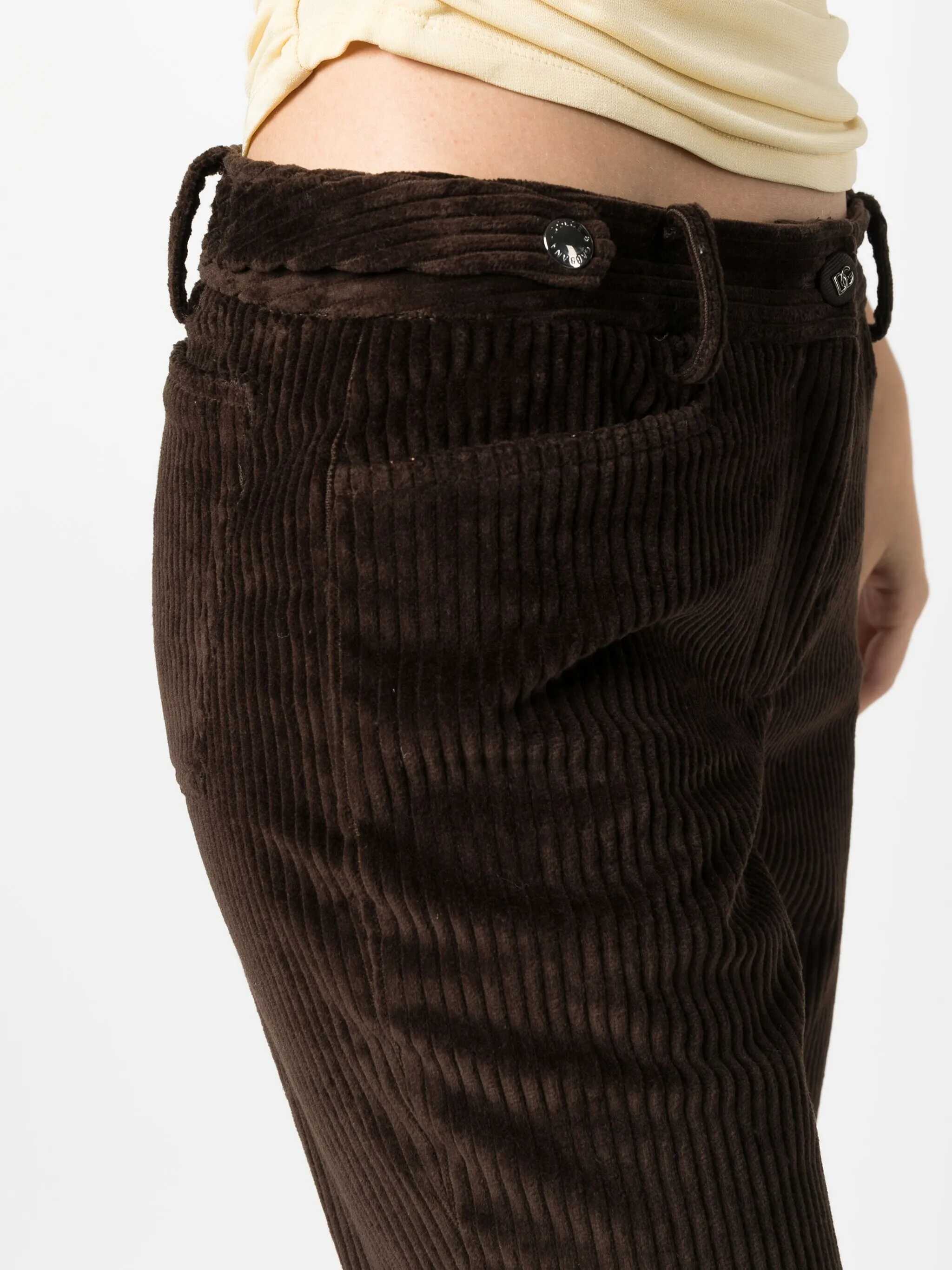 Cotton corduroy pants with slightly bell bottom, zip and button closure