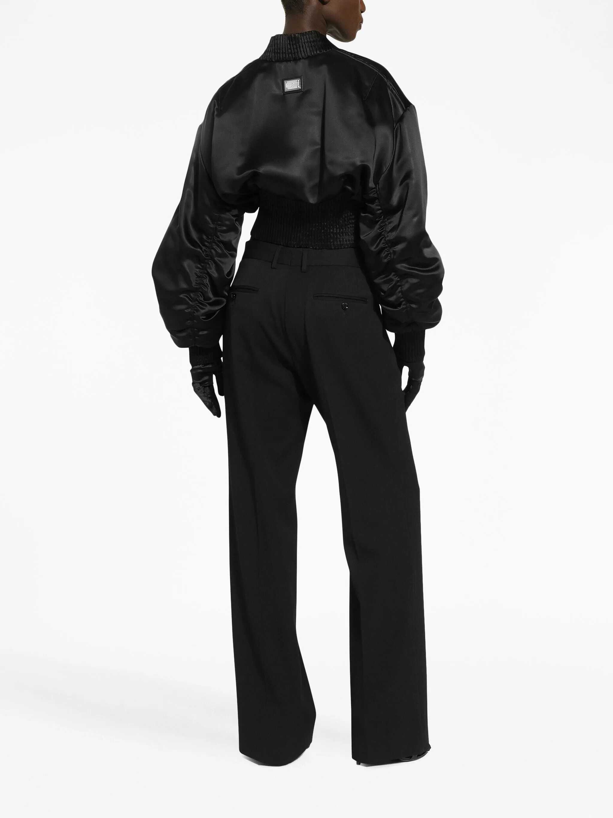 Flared pants in stretch wool canvas, pleats, zip and button closure, pockets