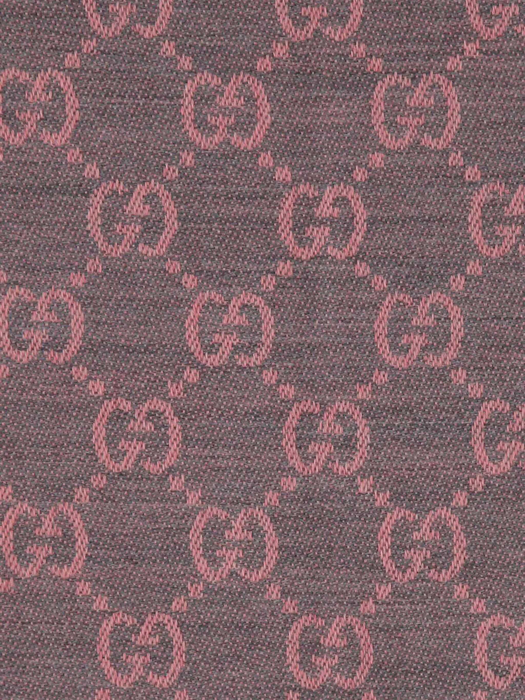 medium grey/pink organic wool signature GG Damier jacquard fringed edge wraparound style